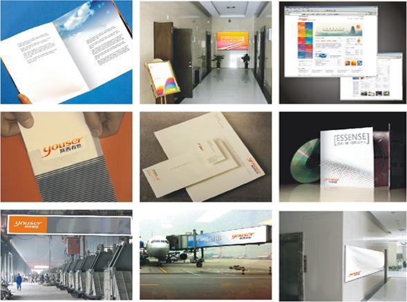 本部分展示了陜西有色的標(biāo)志、輔助圖形、理念在實(shí)際中的應(yīng)用,其中包括:企業(yè)畫冊、品牌文化手冊、員工培訓(xùn)手冊、理念海報(bào)、明信片、邀請函、信紙、信封、名片、CD、包裝盒、室內(nèi)理念傳播、廠區(qū)理念傳播、戶外廣告、戶外理念海報(bào)、展覽展示、網(wǎng)站等。