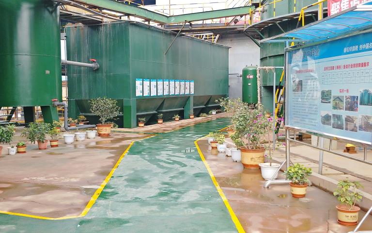 然而,當(dāng)我們走進(jìn)漢中鋅業(yè)公司水處理車(chē)間,奪目而入的景色卻令人眼前一亮:一字排開(kāi)的垂柳,枝繁葉茂,黃綠相間的枝葉在冬日暖陽(yáng)下翩翩起舞。沿圍墻新砌的小花池綠意盎然,大門(mén)旁的兩棵鐵樹(shù)在花團(tuán)錦簇的萬(wàn)壽菊簇?fù)硐拢鷻C(jī)勃勃。剛刷過(guò)漆的綠色柵欄式推拉門(mén)與金光燦燦的“水處理車(chē)間”銅字招牌相得益彰,熠熠生輝,關(guān)不住滿園景致,綠色的設(shè)備,綠色的通道,黃色的邊界線,擺放整齊的盆景,醒目的巨幅宣傳牌、宣傳橫幅、櫥窗,洋溢著濃厚的文化氣息。