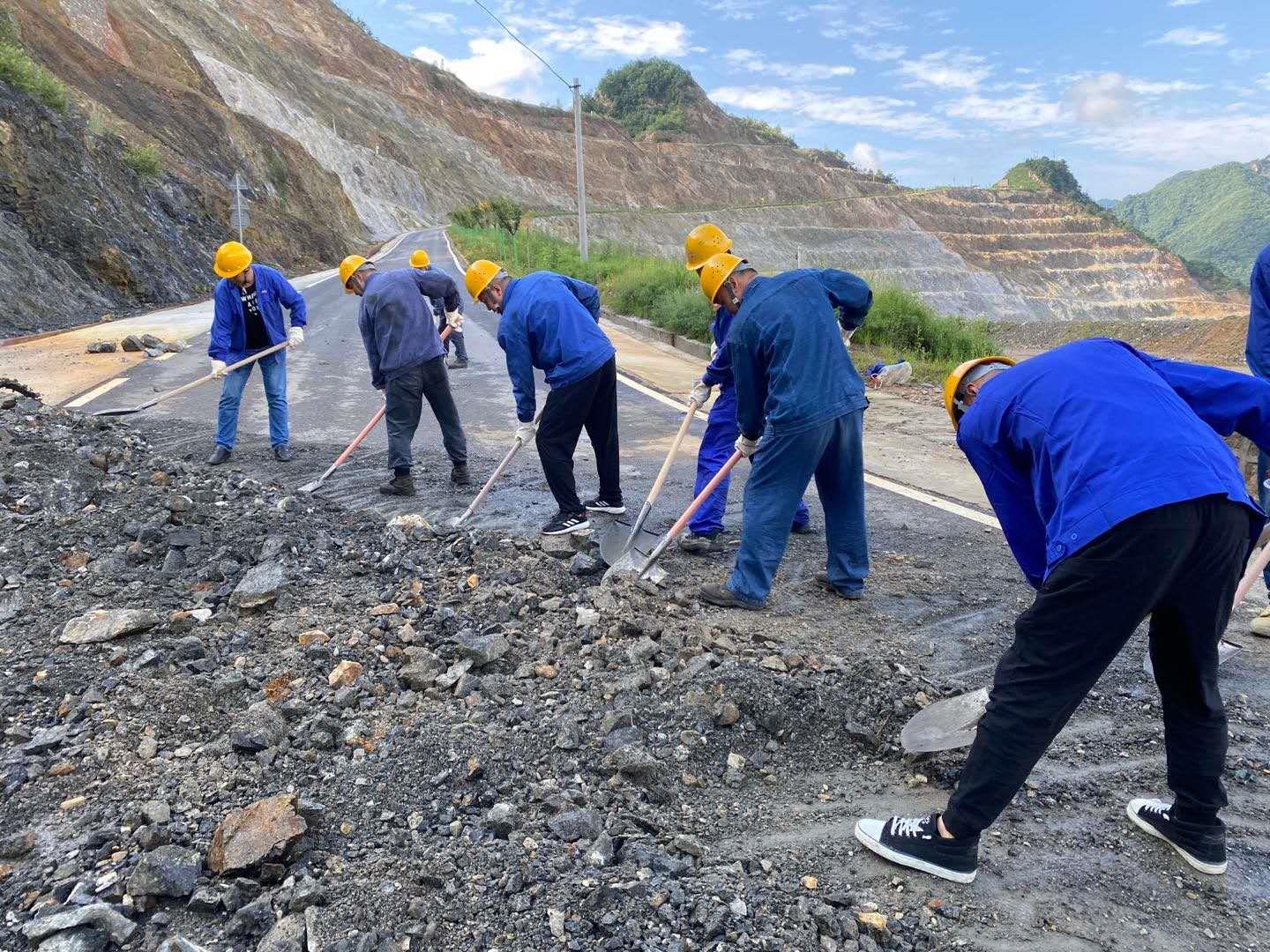 露天礦積極響應(yīng)金鉬集團(tuán)號(hào)召,在全員開展自救工作的同時(shí),抽調(diào)骨干力量和設(shè)備,馳援受災(zāi)最嚴(yán)重的地區(qū),展開對外援助工作。8月6日上午,在搶修石可至麻家砭道路中,露天礦抽調(diào)11臺(tái)工程機(jī)械和車輛,露天礦領(lǐng)導(dǎo)帶領(lǐng)100余人奔赴現(xiàn)場,他們克服持續(xù)降雨、河水漫漲、通訊不暢、運(yùn)輸?shù)缆藩M窄、夜間照明不良等困難,歷經(jīng)63小時(shí)搶修水毀道路4公里, 8月8日晚23時(shí)道路通行,為金堆礦區(qū)恢復(fù)供水供電提供了保障。臨近的洛南縣麻坪鎮(zhèn)災(zāi)情最為嚴(yán)重,隨后,露天礦又參與到搶修麻坪鎮(zhèn)通村道路工作中。為了爭取更多的搶修時(shí)間,救災(zāi)人員自帶干糧,與災(zāi)民同吃同住,歷時(shí)15天,搶修水毀道路7公里,倒運(yùn)砂石量20000立方米,于8月25日12時(shí)恢復(fù)了至洛南縣的通村道路。