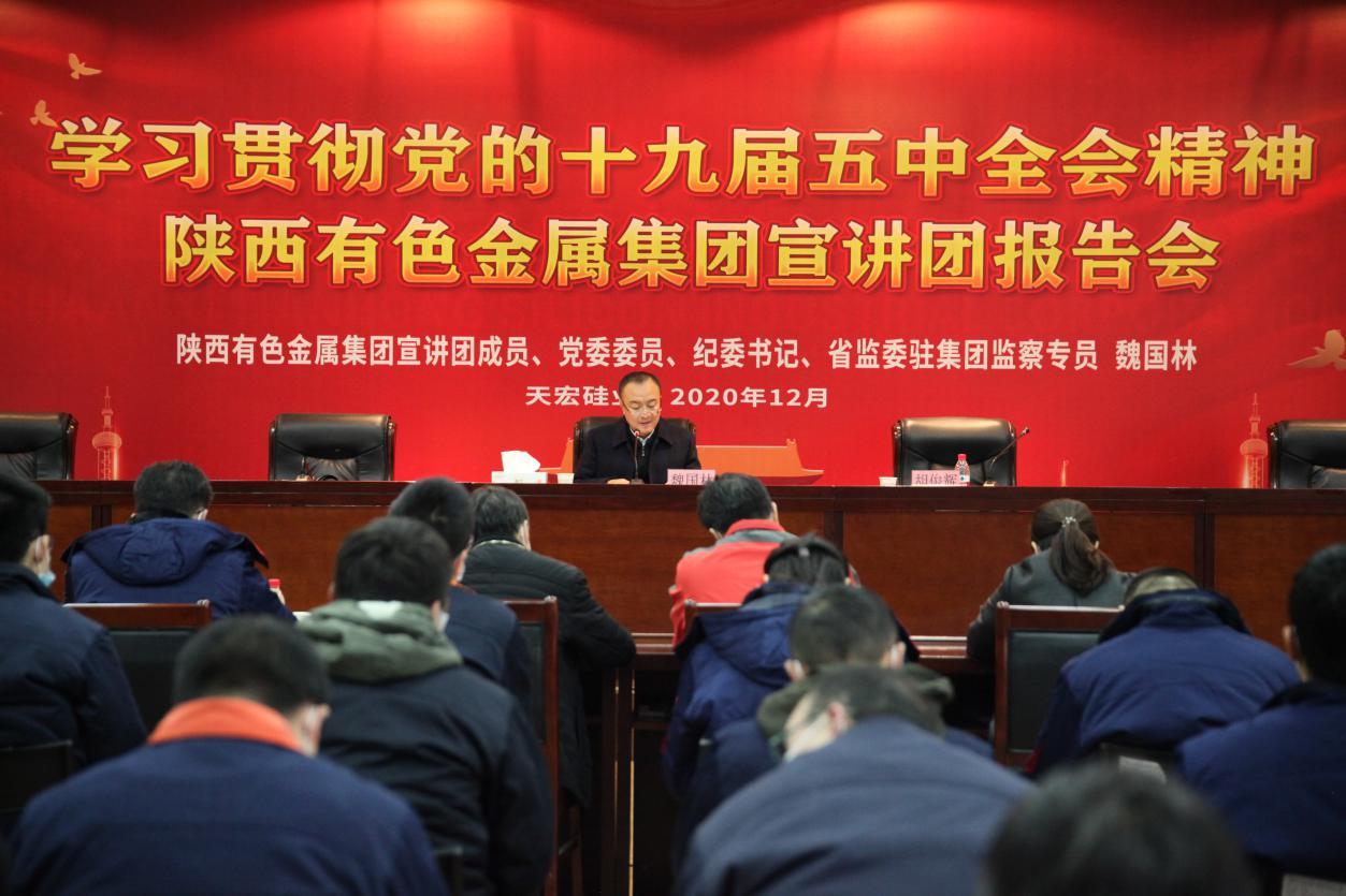 12月4日,學(xué)習(xí)宣傳貫徹黨的十九屆五中全會(huì)精神陜西有色金屬集團(tuán)宣講團(tuán)在天宏硅業(yè)進(jìn)行宣講。陜西有色金屬集團(tuán)宣講團(tuán)成員、黨委委員、紀(jì)委書記、省監(jiān)委駐集團(tuán)公司監(jiān)察專員魏國(guó)林作宣講報(bào)告。集團(tuán)公司紀(jì)委副書記蘇懷崗、黨委巡察辦主任陳桂瓊等有關(guān)人員參加會(huì)議。會(huì)議由天宏硅業(yè)黨委書記、董事長(zhǎng)胡俊輝主持。