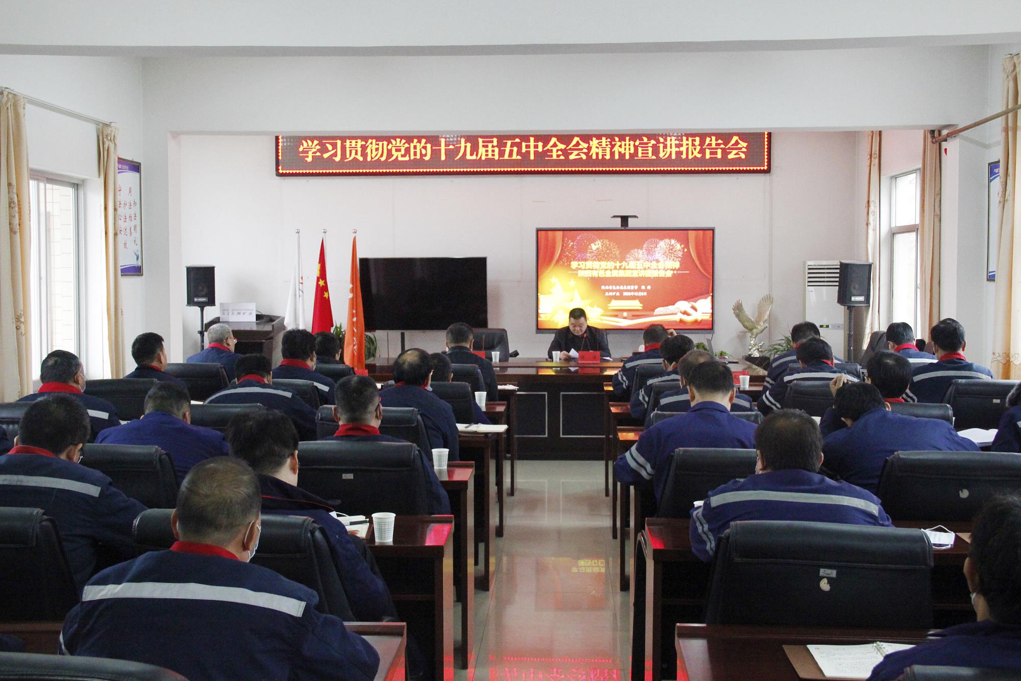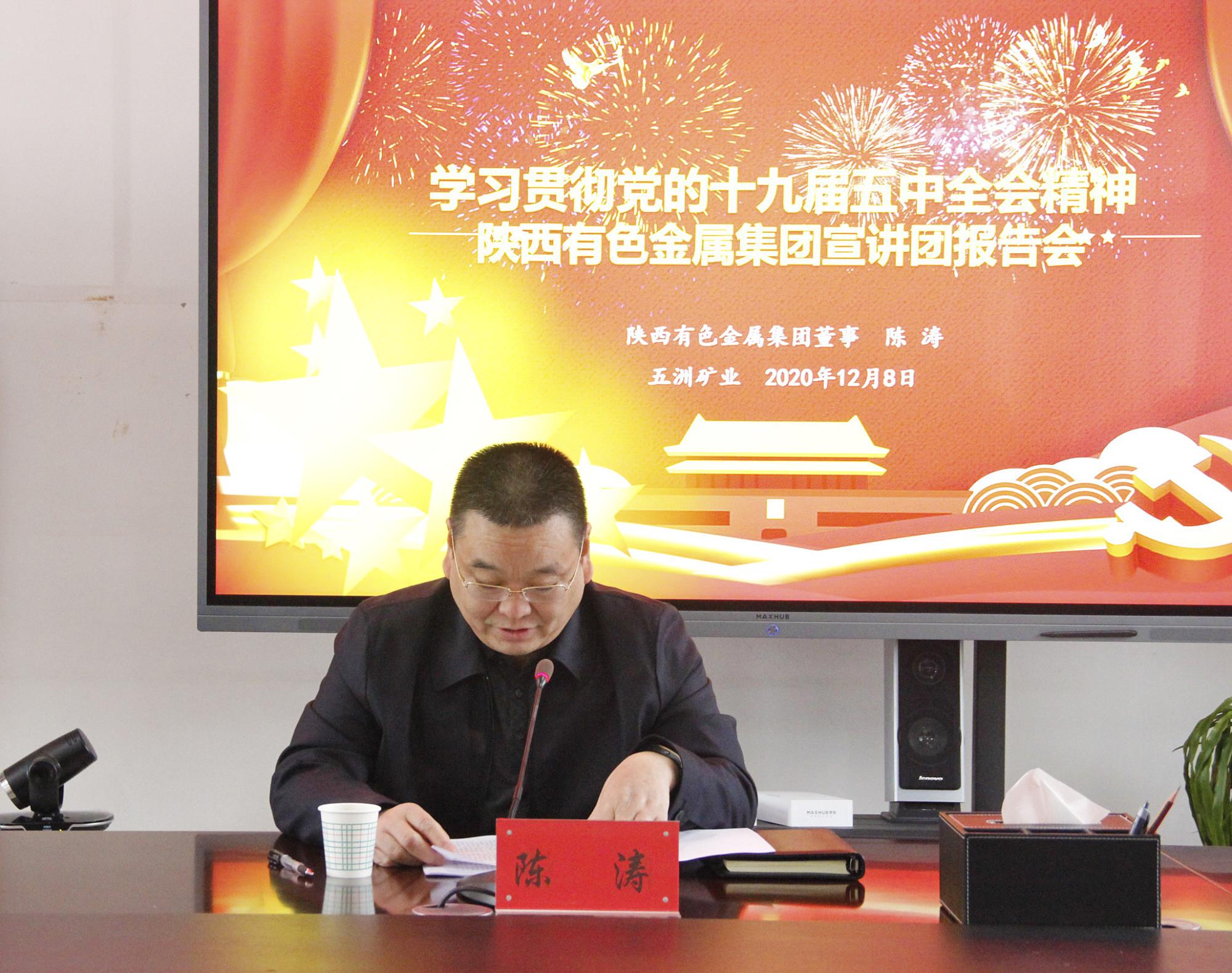 12月8日,學(xué)習(xí)貫徹黨的十九屆五中全會(huì)精神陜西有色金屬集團(tuán)宣講團(tuán)報(bào)告會(huì)在五洲礦業(yè)舉行。陜西有色金屬集團(tuán)宣講團(tuán)成員、董事陳濤作宣講報(bào)告,五洲礦業(yè)黨委書記、董事長張景奇主持。