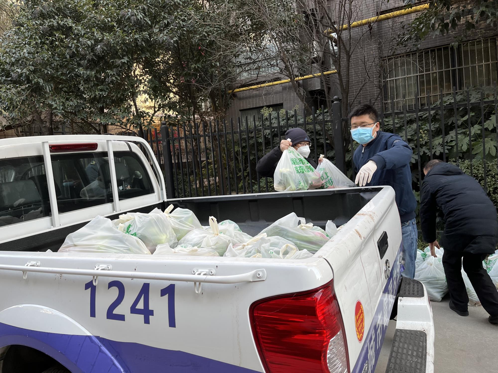 “菜什么時(shí)候能送到,家里都快斷炊了?!薄澳軒臀壹疑狱c(diǎn)東西嗎?家里沒米了!”“我家隔壁沒住人,不用送菜了。”……家住碑林區(qū)新旅城的地礦集團(tuán)東新科貿(mào)志愿者劉剛、工程公司志愿者朱斌面對(duì)小區(qū)居民每天的“點(diǎn)單”忙的不可開交,和社區(qū)工作人員快速登記,逐戶送菜到住戶家門口。
