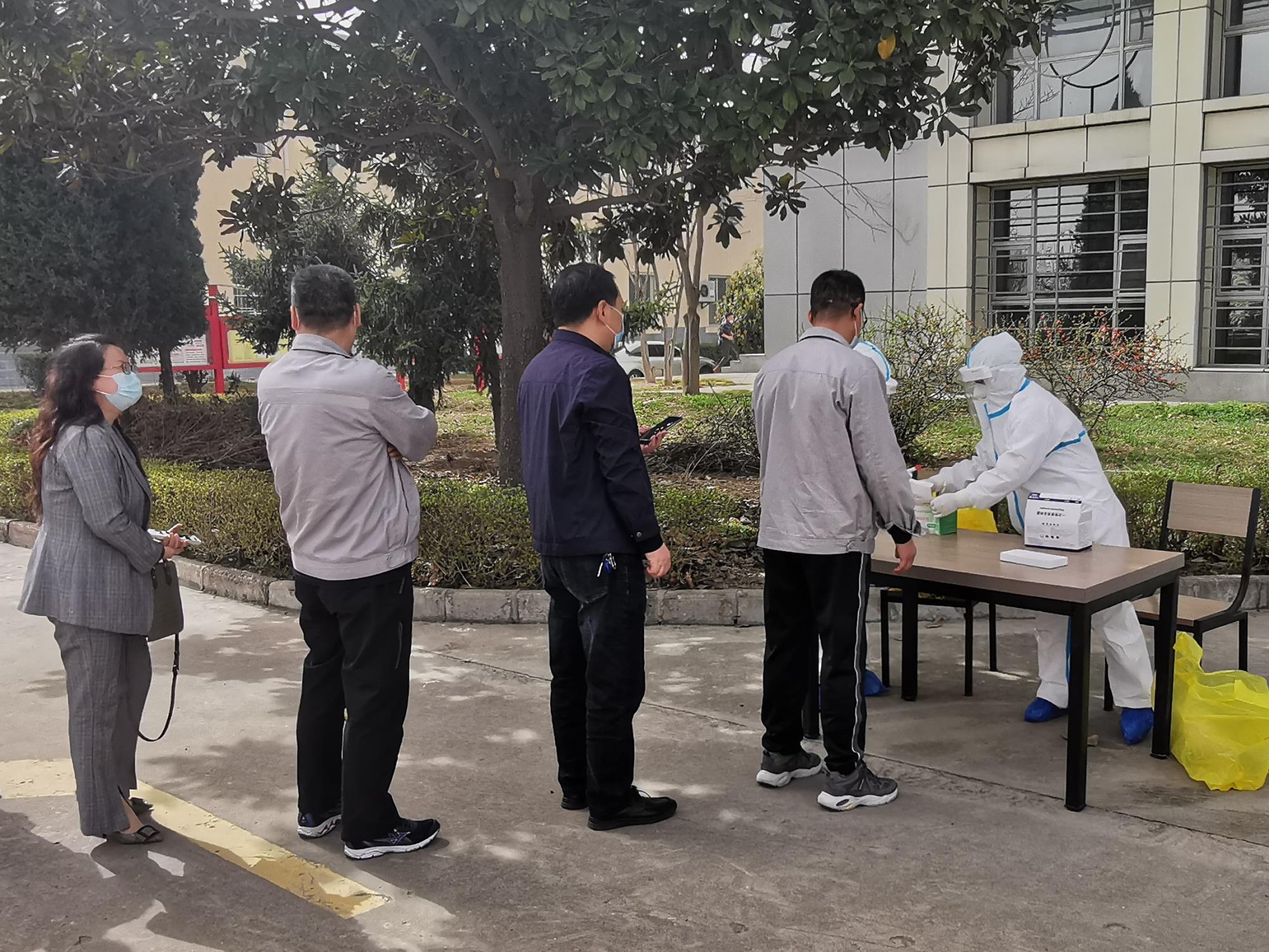由于公司屬于連續(xù)生產(chǎn)企業(yè),根據(jù)銅川市防疫政策要求,現(xiàn)階段公司已實(shí)行封閉廠(chǎng)區(qū)式管理。在人員、設(shè)備安全的前提下,保障生產(chǎn)安全平穩(wěn)進(jìn)行,從嚴(yán)從緊從細(xì)落實(shí)各項(xiàng)措施。3月14日下午,公司經(jīng)過(guò)多方協(xié)調(diào),聯(lián)系有關(guān)部門(mén)對(duì)在崗人員進(jìn)行全員核酸檢測(cè)。