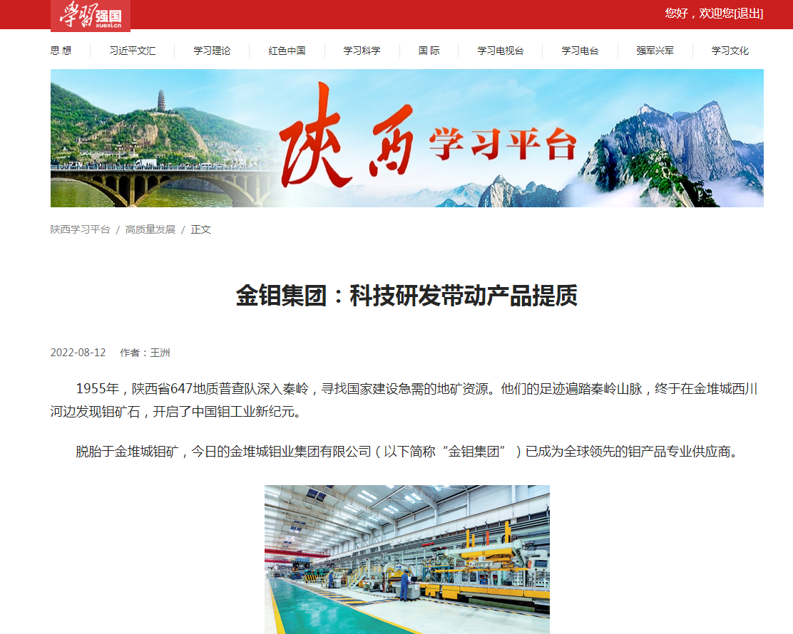 脫胎于金堆城鉬礦,今日的金堆城鉬業(yè)集團(tuán)有限公司(以下簡稱“金鉬集團(tuán)”)已成為全球領(lǐng)先的鉬產(chǎn)品專業(yè)供應(yīng)商。