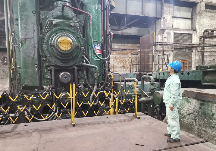 郭文生正在檢查近10米高、重達數(shù)千噸的熱軋機。