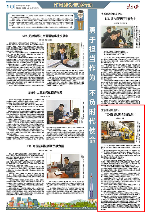 寧偉軍感到更加欣慰的是,現(xiàn)在寶鈦集團(tuán)鍛造廠學(xué)習(xí)氛圍好,人人比著干,先后有23名在各自領(lǐng)域?qū)I(yè)水平高、工作能力強(qiáng)、業(yè)績(jī)成果突出的職工被評(píng)為寶鈦工匠、技能標(biāo)兵、技術(shù)能手,拿到了和管理崗一樣的薪酬。2022年寶鈦集團(tuán)鍛造廠萬噸班組喜獲陜西省總工會(huì)頒發(fā)的“夢(mèng)桃式班組”榮譽(yù)稱號(hào)。