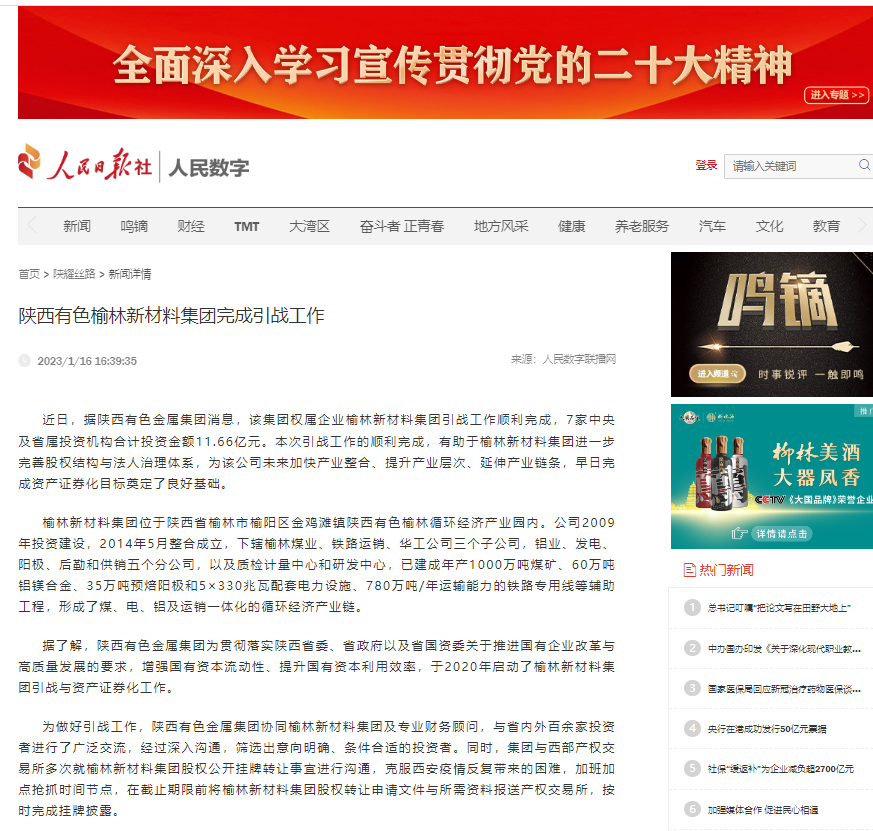 據(jù)了解,陜西有色金屬集團(tuán)為貫徹落實(shí)陜西省委、省政府以及省國資委關(guān)于推進(jìn)國有企業(yè)改革與高質(zhì)量發(fā)展的要求,增強(qiáng)國有資本流動(dòng)性、提升國有資本利用效率,于2020年啟動(dòng)了榆林新材料集團(tuán)引進(jìn)戰(zhàn)略投資者與資產(chǎn)證券化工作。