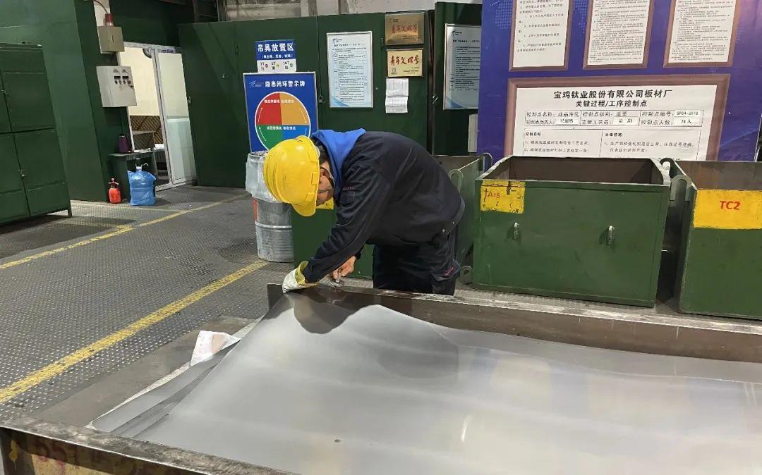 走進(jìn)板材廠,記者見到了寶鈦工匠、板材廠老員工袁章倫,從學(xué)徒到師傅,他講述著自己與寶鈦的故事,也譜寫著與寶鈦的新未來。袁章倫說:“現(xiàn)在越來越多新鮮血液加入寶鈦,相信未來可期。”生產(chǎn)線上,運(yùn)轉(zhuǎn)的機(jī)器轟轟作響,記者看到有許多年輕的面孔,一位青年員工神情一絲不茍,正在對(duì)剛完成冷軋工序的鈦板材進(jìn)行質(zhì)量檢測(cè)。
