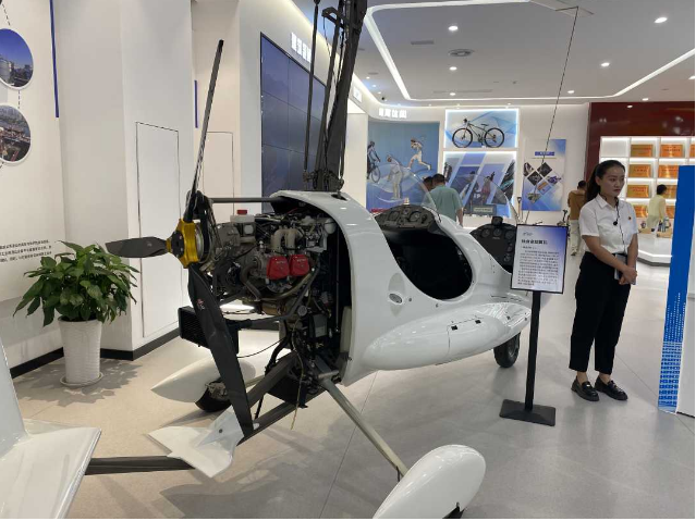 陜西寶雞寶鈦集團有限公司展覽館里顯示的鈦合金旋翼機,鈦合金用量約占飛機金屬材料用量的60%至70%。經(jīng)濟日報記者 劉蓉攝