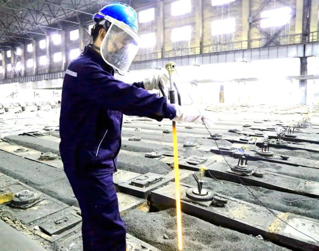不管是早班還是晚班,我們這些熟練工基本都是滿負(fù)荷作業(yè),更不用說(shuō)新人。”王彥龍說(shuō)。跟隨王彥龍走進(jìn)車間,此時(shí)電解槽旁的溫度更是高達(dá)60℃以上。在一頓繁雜的操作后,王彥龍指揮天車將殘極提了起來(lái),撈塊、扒沉淀……整個(gè)作業(yè)持續(xù)了30分鐘左右。