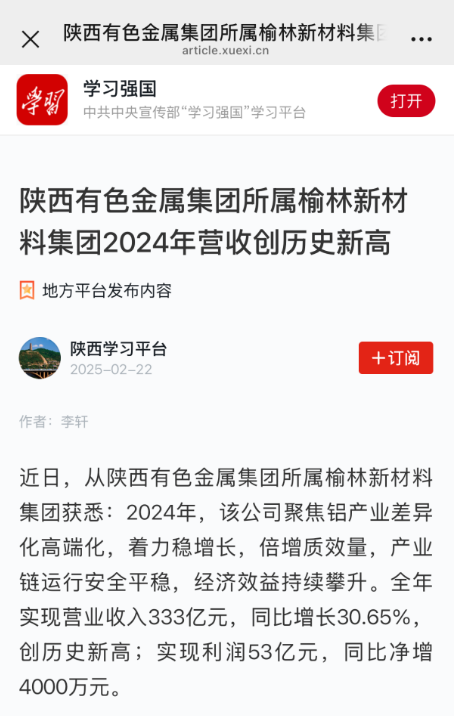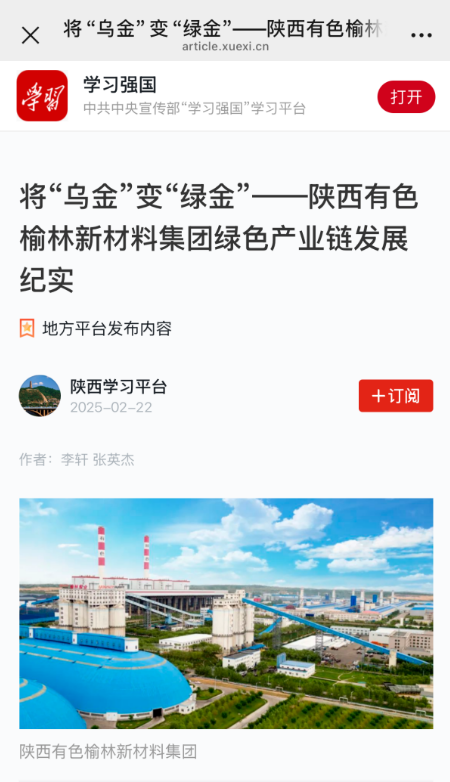 “學(xué)習(xí)強(qiáng)國”平臺(tái)連續(xù)報(bào)道榆林新材料集團(tuán)高質(zhì)量發(fā)展成效