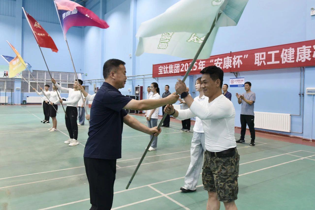 6月15日晚,寶鈦集團2025年“安康杯”職工健康減重訓練營正式開營,109名職工學員將在專業(yè)健身教練與醫(yī)療團隊的全程指導下,開啟為期三個月的科學減重之旅。集團黨委副書記、工會主席賀治民出席活動并為各小組授旗,工會副主席田周平致辭。集團總經(jīng)理助理耿愛武,生產(chǎn)安環(huán)部、綜合管理分公司、寶鈦醫(yī)院相關負責人等參加活動。