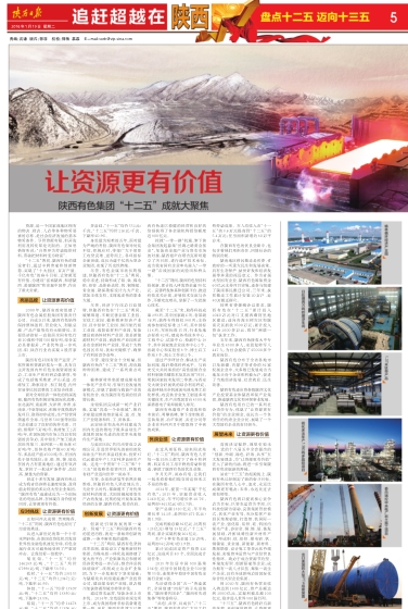 “十三五”,陜西有色將開啟新的征程,開創(chuàng)新的輝煌,讓資源更有價值!