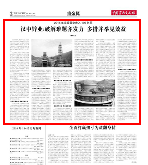 強(qiáng)風(fēng)識(shí)勁草,路遙知馬力。身處經(jīng)濟(jì)寒冬的漢中鋅業(yè)有限責(zé)任公司(以下簡(jiǎn)稱“漢中鋅業(yè)”)經(jīng)受住了原料供應(yīng)和產(chǎn)品銷售的雙重壓力,作為一家“兩頭在外”的有色冶煉加工企業(yè),夾縫生存,逆勢(shì)奮進(jìn),走過了極不平凡的2016年,順利實(shí)現(xiàn)了“十三五”開門紅。