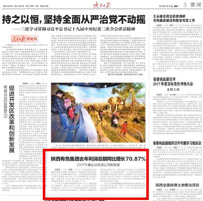2017年,該集團超額完成剝離企業(yè)辦社會職能工作,真正實現(xiàn)了輕裝上陣。截至2017年年底,陜西有色集團已全面完成年度任務。其中,“三供一業(yè)”移交協(xié)議簽訂率為97%。