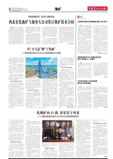 近日,西北有色地質(zhì)礦業(yè)集團有限公司與加拿大預見發(fā)展公司簽署技術(shù)服務(wù)合同,這是繼2017年履行完成雙方簽定的技術(shù)合作框架協(xié)議之后,再次為其在美國內(nèi)華達州釩礦項目提供選冶擴大實驗及礦山技術(shù)服務(wù)。對方已預付資金20多萬美元,后續(xù)將按工作進度支付技術(shù)服務(wù)資金、設(shè)計建設(shè)資金等。合同承接單位主要為西北有色地礦集團下屬的西北有色地質(zhì)研究院,該院長期致力于石煤釩礦高效開發(fā)利用及產(chǎn)業(yè)化研究,率先提出了石煤釩礦機械選礦拋尾工藝并實現(xiàn)了拌酸熟化工藝產(chǎn)業(yè)化,目前在低品位釩礦石酸浸技術(shù)、低品位氧化銅礦石浮選關(guān)鍵技術(shù)、含碳銅鉛鋅礦選礦新藥劑試驗研究與應(yīng)用、難處理金紅石關(guān)鍵技術(shù)成果推廣等方面已達國際領(lǐng)先水平。