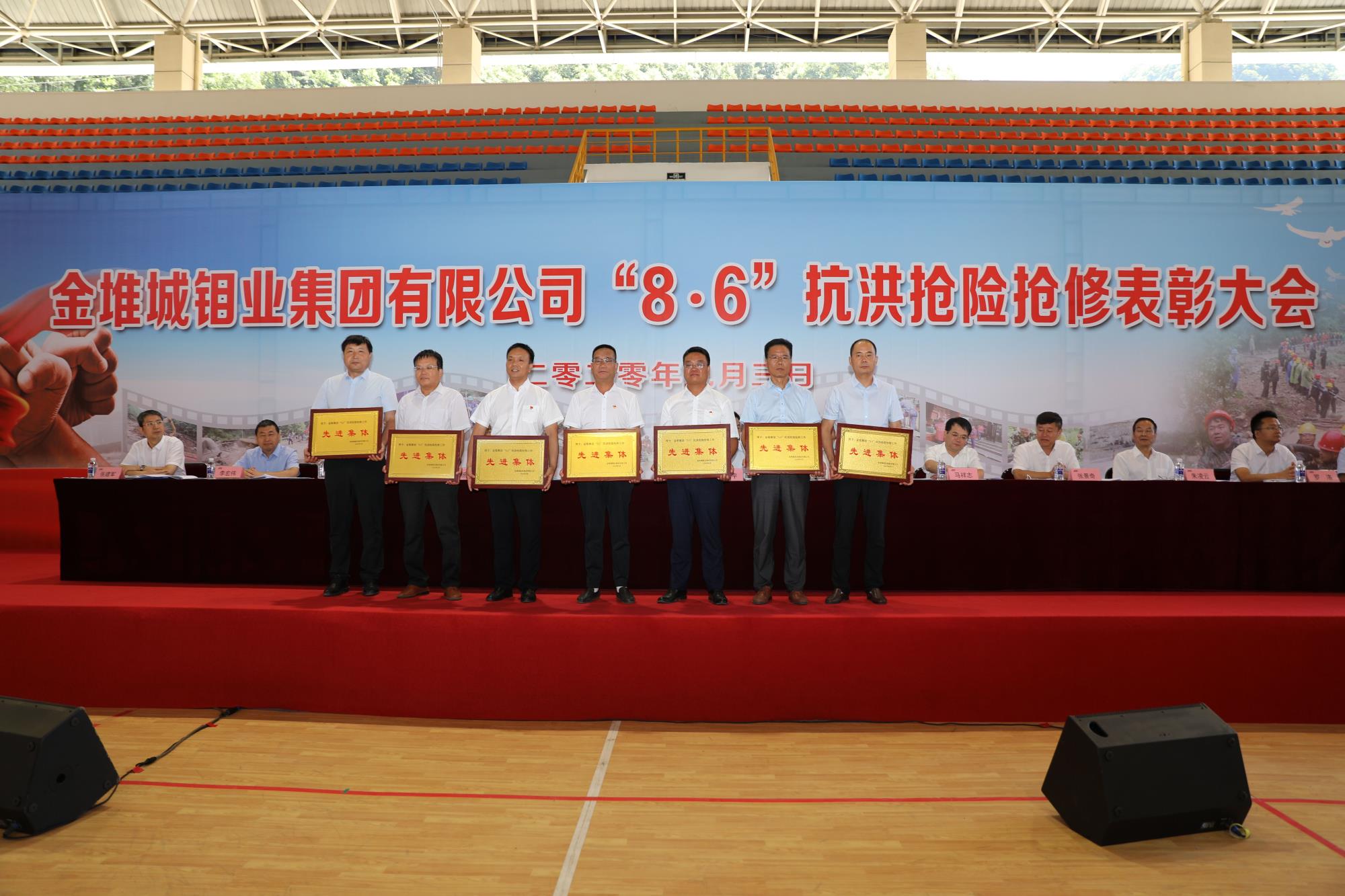 9月3日,金鉬集團(tuán)在金堆礦區(qū)石可體育活動中心召開“8.6”抗洪搶險搶修表彰大會。陜西有色金屬集團(tuán)黨委書記、董事長馬寶平出席表彰大會并講話。
