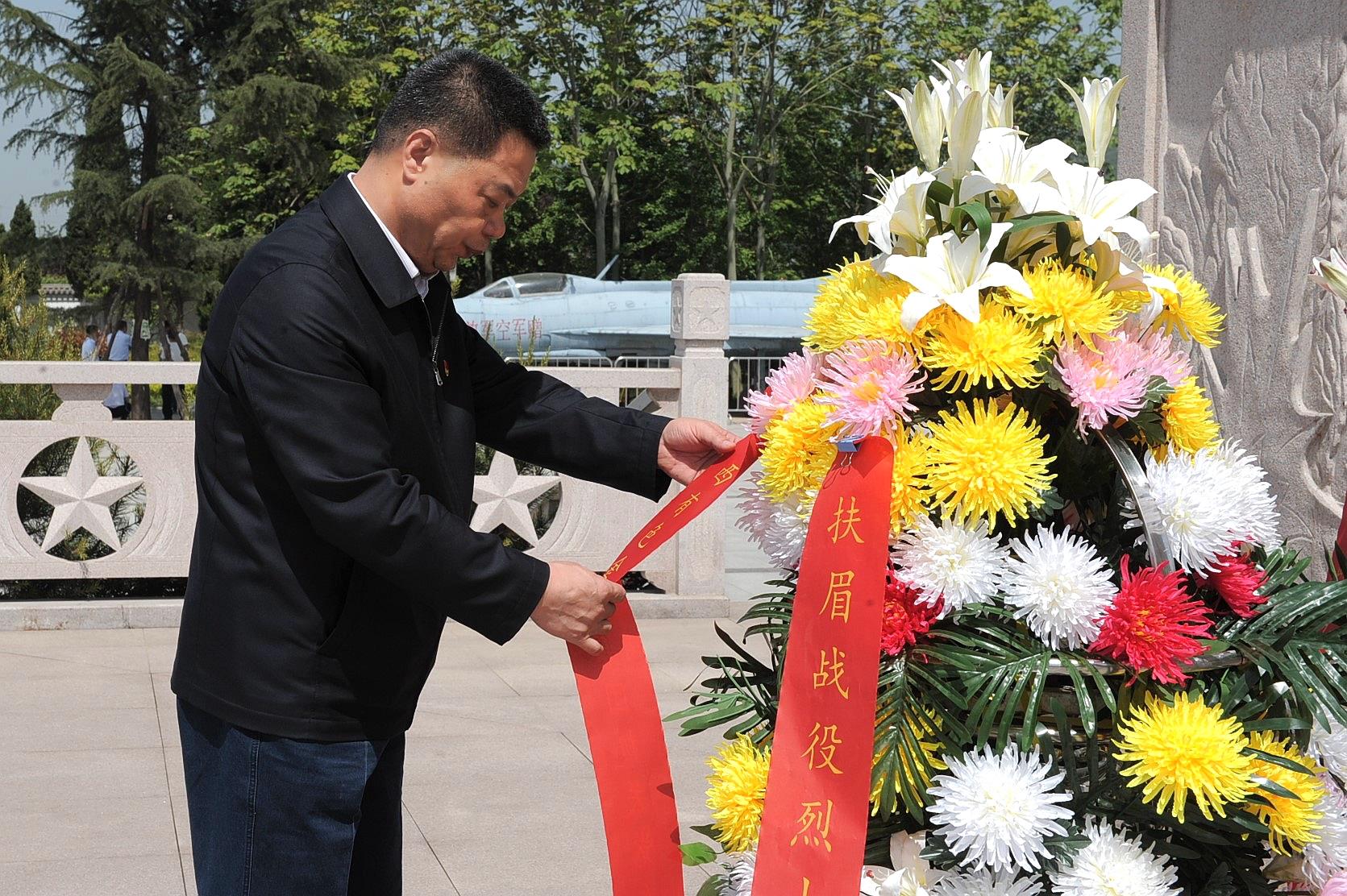 在扶眉戰(zhàn)役烈士紀(jì)念碑前,全體黨員莊嚴(yán)肅立、默哀致敬。馬寶平代表全體黨員向革命烈士敬獻(xiàn)花籃,并仔細(xì)整理花籃緞帶,帶領(lǐng)大家向革命烈士行三鞠躬禮,深刻緬懷在扶眉戰(zhàn)役中犧牲的革命烈士。在黨旗見證下,大家共同重溫了入黨誓詞,用錚錚誓言表達(dá)了不忘初心、牢記使命的堅(jiān)定決心。