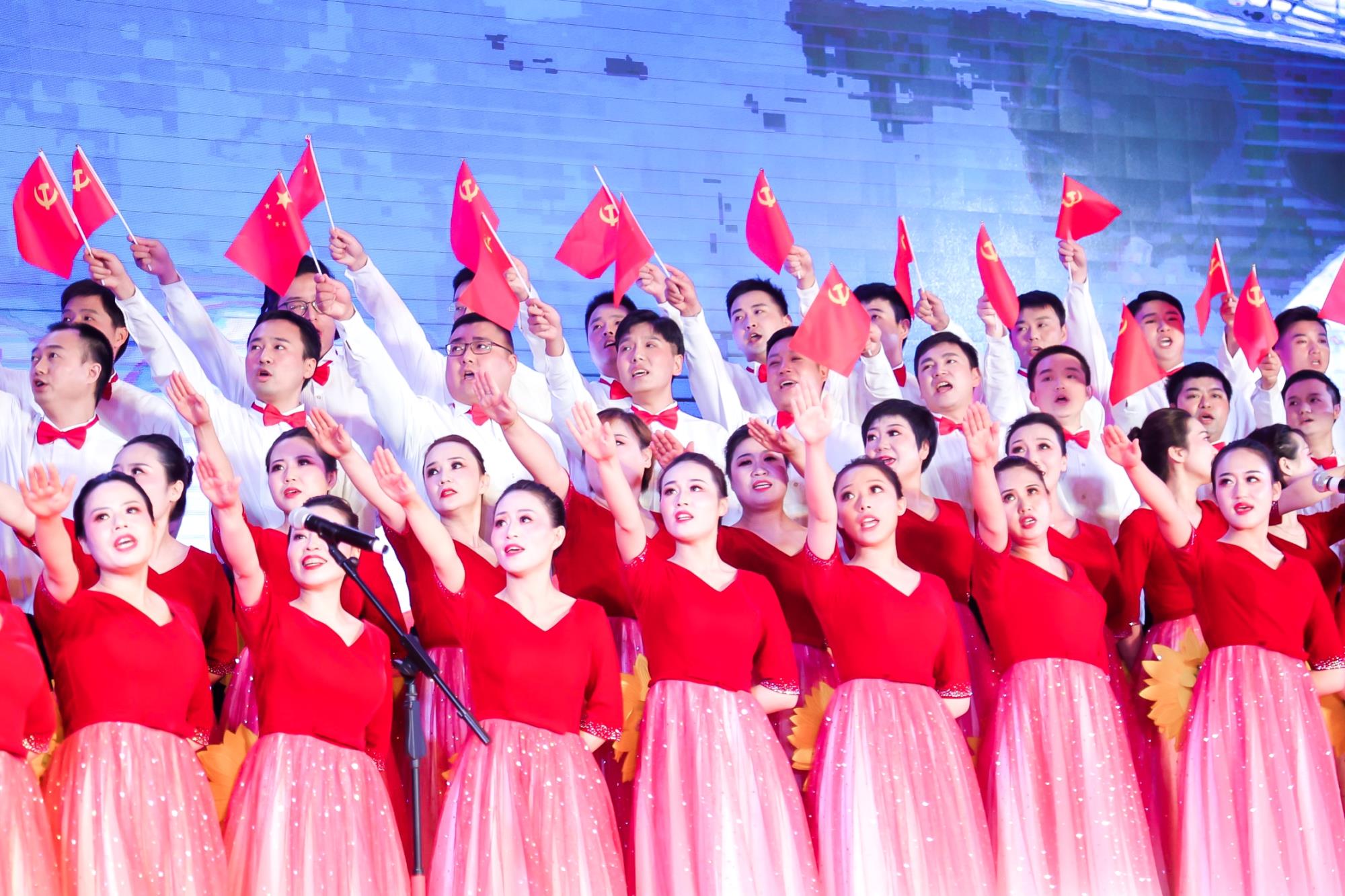 演出最后,全體起立,齊唱歌曲《沒有共產(chǎn)黨就沒有新中國》。大家激動地揮舞著手中的旗幟,臉上洋溢著幸福的笑容,共同為中國共產(chǎn)黨成立100周年華誕獻上深情的祝福。