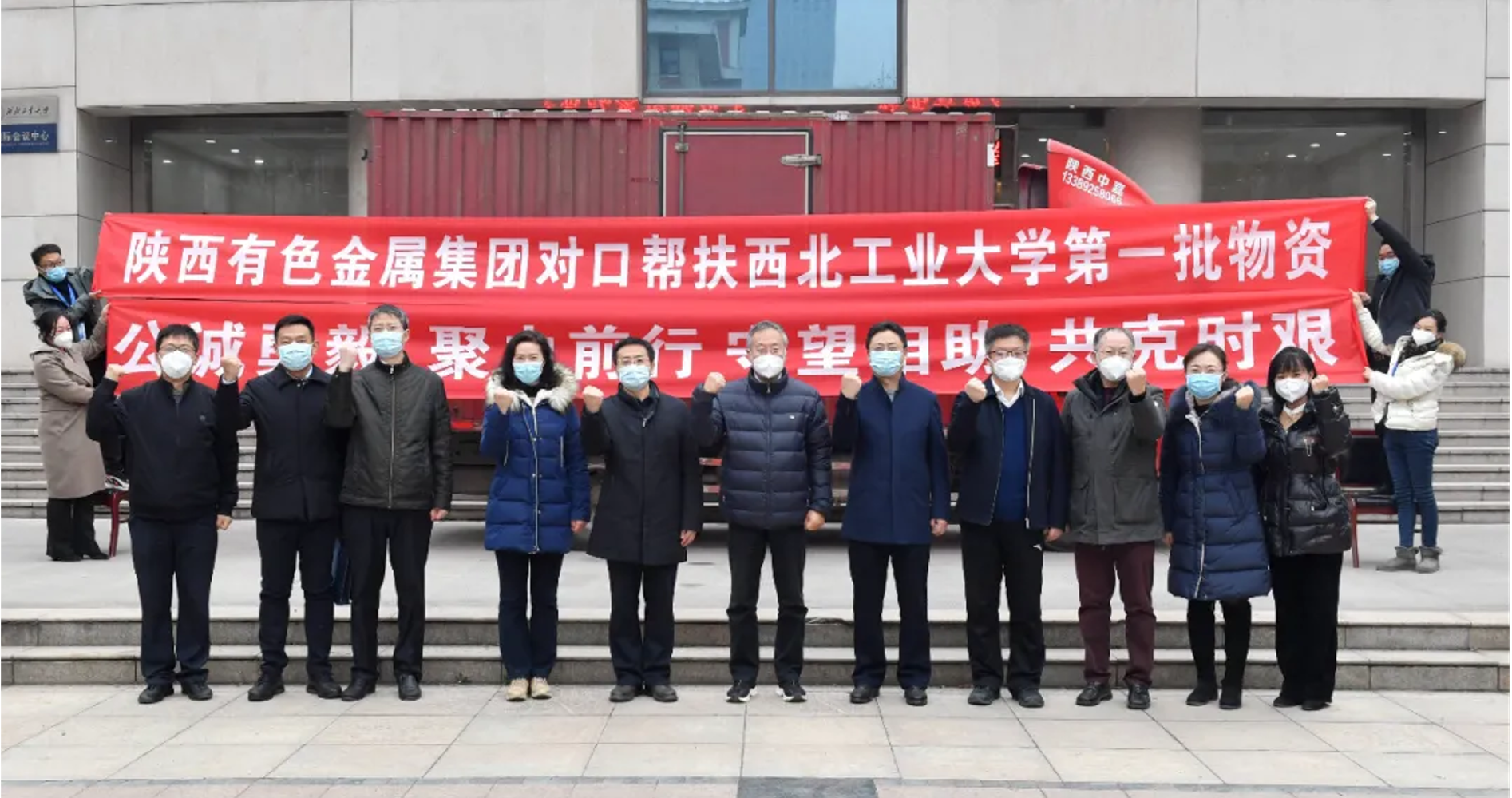 1月2日,陜西省委組織部、省國資委黨委召開專題會議,對開展校企結(jié)對幫扶工作進(jìn)行安排部署?!扒嗌揭坏劳朴?、明月何曾是兩鄉(xiāng)!”陜西有色金屬集團(tuán)黨委堅決貫徹、快速行動,召開專題會議,第一時間成立對口幫扶工作專班,圍繞全力保障西北工業(yè)大學(xué)師生正常生活和疫情防控需求,克服困難,廣開渠道,加急采購運輸大量疫情防控物資和各類生活物資。