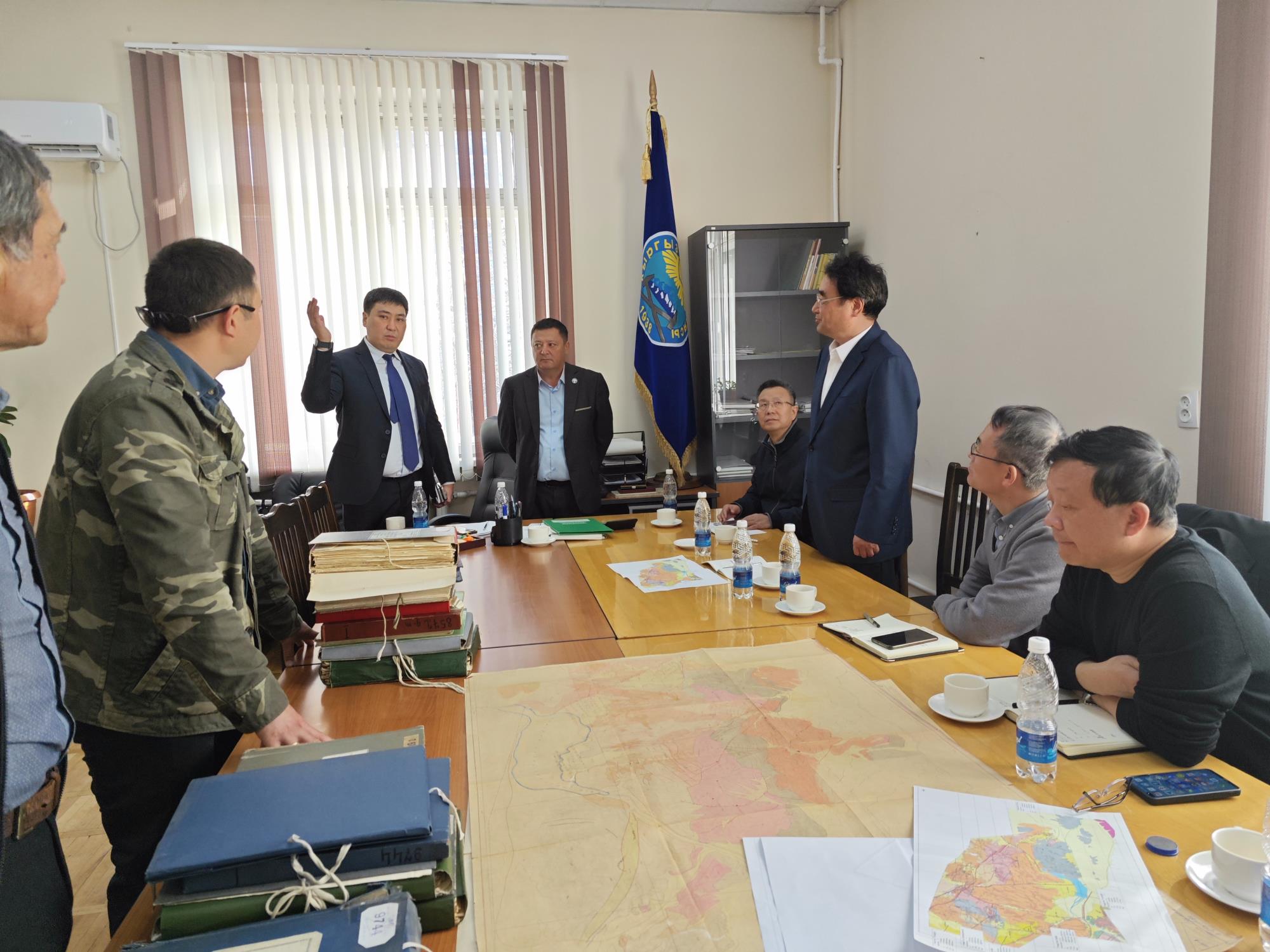 訪吉期間,代表團(tuán)與吉爾吉斯斯坦地質(zhì)學(xué)國(guó)家研究中心礦床專家進(jìn)行了深入交流,查看了相關(guān)地質(zhì)資料,并赴野外對(duì)克孜勒-歐姆普樂斯卡婭鈦礦(Kizil Ompol鈦礦)和庫(kù)特賽II(Kusai-2)稀土多金屬礦山進(jìn)行了現(xiàn)場(chǎng)踏勘,進(jìn)一步了解項(xiàng)目條件及礦產(chǎn)開發(fā)的可行性。