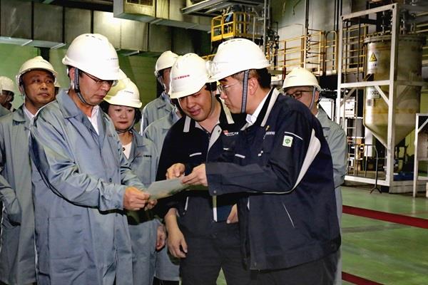 吳群英一行深入二期2.5萬(wàn)噸電子級(jí)粒狀多晶硅產(chǎn)業(yè)升級(jí)項(xiàng)目建設(shè)現(xiàn)場(chǎng),詳細(xì)詢問(wèn)了項(xiàng)目進(jìn)展情況;在硅烷充裝、粒狀硅和超純硅生產(chǎn)現(xiàn)場(chǎng),仔細(xì)了解了生產(chǎn)工藝、技術(shù)裝備以及產(chǎn)品質(zhì)量、應(yīng)用領(lǐng)域等情況。