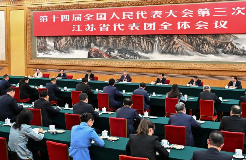 在聽(tīng)取大家發(fā)言后,習(xí)近平作了發(fā)言。他首先表示贊成政府工作報(bào)告,對(duì)江蘇工作予以肯定,希望江蘇落實(shí)好挑大梁的責(zé)任,努力取得新的更大成績(jī)。