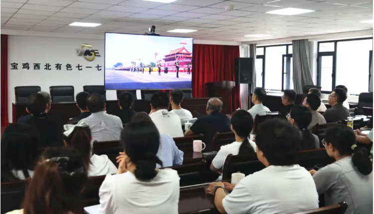 9月3日,陜西有色金屬集團(tuán)各單位組織干部職工集中收看了紀(jì)念中國人民抗日戰(zhàn)爭暨世界反法西斯戰(zhàn)爭勝利80周年大會(huì)實(shí)況直播,大家懷著無比激動(dòng)的心情認(rèn)真聆聽了習(xí)近平總書記的重要講話,觀看了振奮人心的閱兵盛況,感受到了我國捍衛(wèi)正義與和平的強(qiáng)大力量,引發(fā)熱烈反響和持續(xù)熱議。大家表示要銘記歷史、緬懷先烈,弘揚(yáng)偉大抗戰(zhàn)精神,賡續(xù)紅色血脈,見重點(diǎn)、見落地,確保實(shí)現(xiàn)“三季度功九成、四季度全年勝”目標(biāo),全力推進(jìn)高質(zhì)量轉(zhuǎn)型升級(jí)“初顯成效”。
