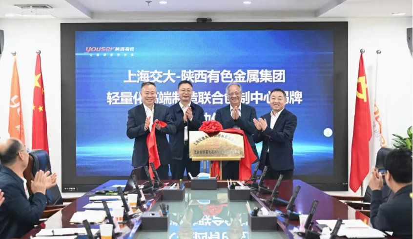 10月10日,上海交大—陜西有色金屬集團(tuán)輕量化高端制造聯(lián)合創(chuàng)制中心揭牌暨啟動(dòng)儀式在集團(tuán)總部舉行。中國工程院院士、上海交大輕合金精密成型國家工程研究中心主任丁文江,陜西有色金屬集團(tuán)黨委書記、董事長(zhǎng)吳群英見證揭牌,上海交大黨委常委、副校長(zhǎng)、鎂材料及應(yīng)用工程技術(shù)研究中心主任曾小勤和集團(tuán)公司黨委委員、副總經(jīng)理黃忠良共同為聯(lián)合創(chuàng)制中心揭牌。