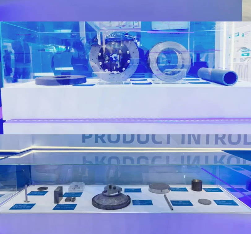 近年來,陜西有色金屬集團深化改革創(chuàng)新,以“著力科技自立自強,建設(shè)現(xiàn)代產(chǎn)業(yè)體系”為著力點,錨定“千百十一”高質(zhì)量發(fā)展階段性目標(biāo),轉(zhuǎn)型升級傳統(tǒng)產(chǎn)業(yè),培育發(fā)展戰(zhàn)新產(chǎn)業(yè),前瞻布局未來產(chǎn)業(yè)。本次參展,碳硅新材以“碳硅筑新,智領(lǐng)未來”為核心主題,深度融合企業(yè)技術(shù)基因與產(chǎn)業(yè)特性,展出中間相瀝青基碳纖維及其復(fù)材、高性能樹脂、金屬基復(fù)材、碳陶剎車盤、碳陶熱場、超韌氧化鋁粉體、高純碳化硅粉體等37件戰(zhàn)新類產(chǎn)品。通過視覺呈現(xiàn)、互動體驗等多維度協(xié)同,打造“沉浸式技術(shù)展示+精準(zhǔn)化合作對接”的創(chuàng)新展出形式,受到復(fù)合材料行業(yè)專家一致好評,吸引了眾多行業(yè)從業(yè)者參觀駐足,有效提升了陜西有色品牌識別度。參展產(chǎn)品體現(xiàn)了碳硅新材與國內(nèi)知名高校院士專家團隊的深度合作,不僅性能優(yōu)勢顯著,更具備成熟的產(chǎn)業(yè)化落地能力,充分彰顯“技術(shù)引領(lǐng)、產(chǎn)研融合”的發(fā)展特色。