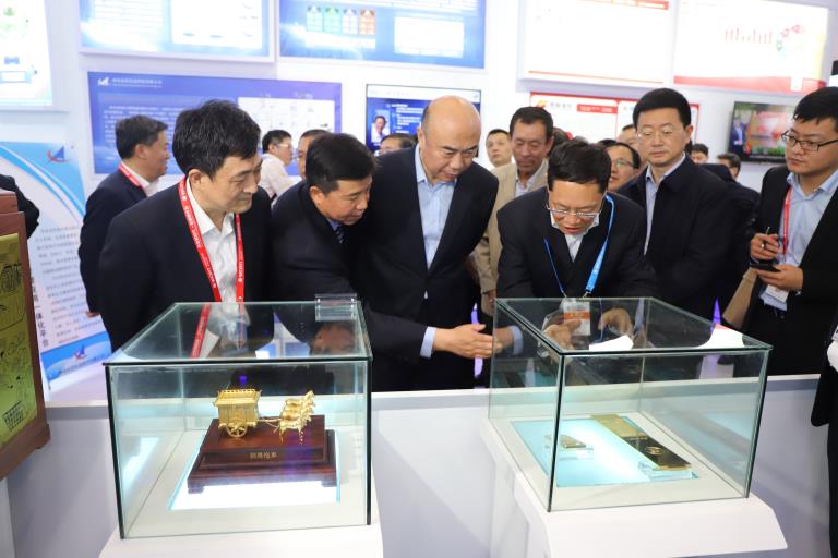 5月15日下午,劉國(guó)中在鄒武裝陪同下視察了陜西有色集團(tuán)展臺(tái),聽取了陜西黃金集團(tuán)負(fù)責(zé)人對(duì)企業(yè)的情況介紹,現(xiàn)場(chǎng)了解了陜西黃金“標(biāo)準(zhǔn)金錠”“清明上河圖”金渲彩繪畫卷、“黃金瑰寶”古錢幣、“和尊”等貴金屬文化產(chǎn)品,充分肯定了陜西黃金集團(tuán)在貴金屬產(chǎn)品上體現(xiàn)中國(guó)文化、陜西文化、“一帶一路”多元文化的思路,同時(shí)對(duì)陜西黃金產(chǎn)業(yè)發(fā)展寄予厚望。