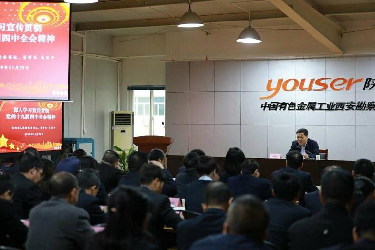 11月29日下午,陜西有色集團(tuán)黨委書(shū)記、董事長(zhǎng)馬寶平到權(quán)屬企業(yè)西安勘察院宣講黨的十九屆四中全會(huì)精神。