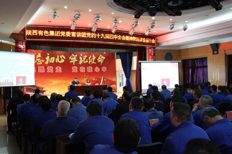 12月5日下午,集團(tuán)公司黨委宣講團(tuán)成員、黨委副書(shū)記郭仕龍赴陜西鋅業(yè)公司宣講黨的十九屆四中全會(huì)精神。報(bào)告會(huì)由陜西鋅業(yè)公司黨委書(shū)記、董事長(zhǎng)何學(xué)斌主持,公司黨政班子全體成員、總經(jīng)理助理及各部室正副主任、各支部書(shū)記及全體黨員200多人參加。