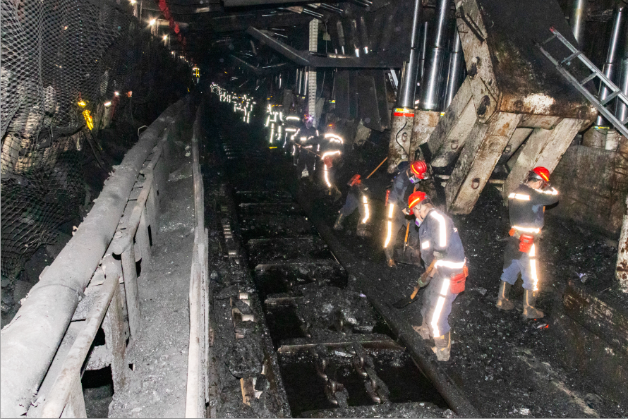 在30202綜采工作面,隨著最后一刀頂煤的順利割落,堅守在生產(chǎn)一線的職工迅速開始連網(wǎng)工作。在連網(wǎng)過程中,各部門緊密協(xié)作,綜采隊隊干靠前指揮,安全管理人員在現(xiàn)場全程監(jiān)督。在場職工或用鐵鍬、或徒手投入到清煤工作中,揮汗如雨、衣衫盡濕,烏黑的臉龐下是他們堅守崗位、篤行奮進(jìn)的決心與毅力,他們用實績實干護(hù)航企業(yè)平穩(wěn)生產(chǎn)。