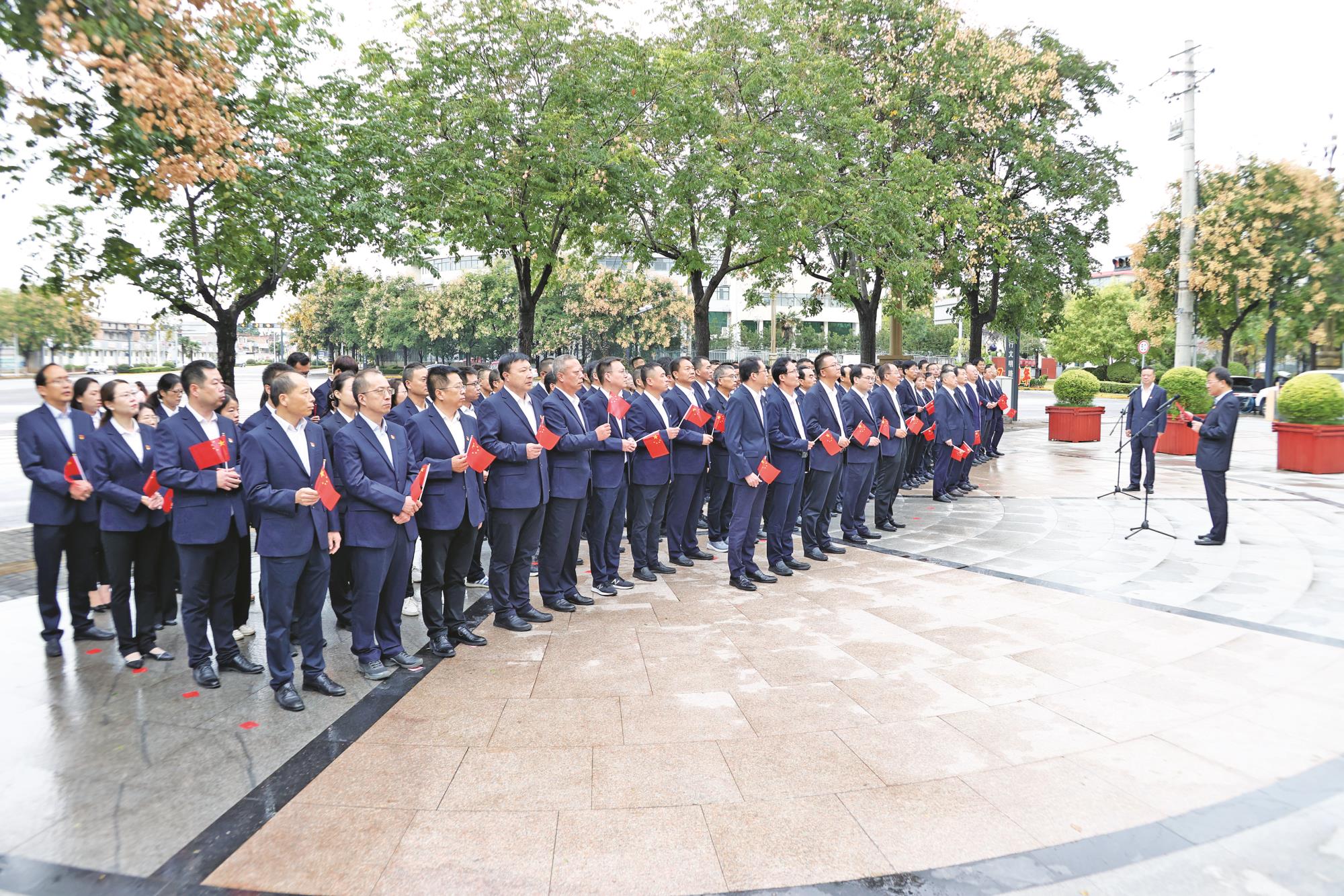 9月30日早9時,金城大廈樓前廣場人員整齊肅立,慶祝中華人民共和國成立75周年升旗儀式在此隆重舉行?,F(xiàn)場150余名職工注視著冉冉升起的國旗,回顧了中華人民共和國成立75周年來的光輝歷程和金鉬集團66年的奮斗歷程,共同祝福偉大祖國山河錦繡,國泰民安。并堅定信心,勇?lián)皣髲妵笔姑?,為把公司建成世界一流鉬釩專業(yè)領(lǐng)軍企業(yè)而努力奮斗。