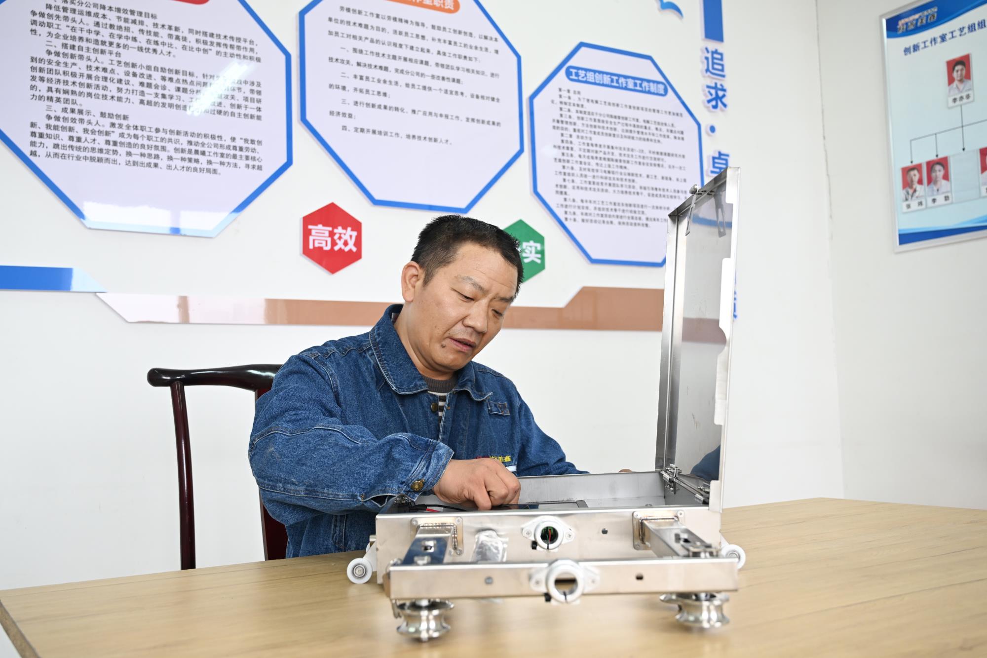 為提升自己的知識(shí)面和專業(yè)化素養(yǎng),他先后通過成人自考完成了大專和本科學(xué)業(yè),并且都報(bào)考了自己喜歡的電氣自動(dòng)化專業(yè)?!翱粗と艘弥鴾y(cè)溫槍貓著腰,一個(gè)槽子一個(gè)槽子去測(cè)量溫度,我們就發(fā)明一種智能化的巡槽機(jī)器人代替人,省時(shí)又省力?!币?yàn)閻蹌?dòng)腦、勤動(dòng)手,他組建的技術(shù)團(tuán)隊(duì)先后攻克了一系列技術(shù)創(chuàng)新和工藝創(chuàng)新技術(shù),并在國(guó)家、省、市榮獲了多項(xiàng)技術(shù)獎(jiǎng)勵(lì)。由于鋰鹽、鉀鹽在電解質(zhì)中不斷累積,造成電解槽的電解溫度大幅降低,爐膛內(nèi)襯也受到了不同程度的腐蝕,他的團(tuán)隊(duì)經(jīng)過長(zhǎng)期觀察、摸索、收集生產(chǎn)數(shù)據(jù),通過不斷地試驗(yàn)優(yōu)化鋁水平、優(yōu)化電解質(zhì),逐步探索出高鋰鹽電解質(zhì)狀態(tài)下的工藝控制技術(shù)。大膽實(shí)驗(yàn)將空腔裝爐變?yōu)槿种谎b爐,再到半腔裝爐,直至實(shí)腔裝爐,解決了500KA大型電解槽在焙燒啟動(dòng)過程中存在的中心溫度高、槽殼“上拱”幅度大、安全風(fēng)險(xiǎn)高的問題,該項(xiàng)技術(shù),單臺(tái)槽可節(jié)約1800度電,單臺(tái)啟動(dòng)可節(jié)約折合900元左右,24臺(tái)槽節(jié)約22萬元左右,后期隨著大修槽數(shù)量增加,經(jīng)濟(jì)效益也會(huì)不斷擴(kuò)大。研發(fā)的智能巡槽機(jī)器人、電解槽爐底溫度監(jiān)測(cè)系統(tǒng),通過互聯(lián)網(wǎng)隨時(shí)查看爐底板溫度實(shí)時(shí)數(shù)據(jù),也可以查詢歷史數(shù)據(jù)曲線,以自動(dòng)監(jiān)測(cè)取代人工監(jiān)測(cè),不但安全系數(shù)增加,準(zhǔn)確率大幅提高,該發(fā)明榮獲2024年陜西省企業(yè)“三新三小”創(chuàng)新競(jìng)賽項(xiàng)目三等獎(jiǎng)。