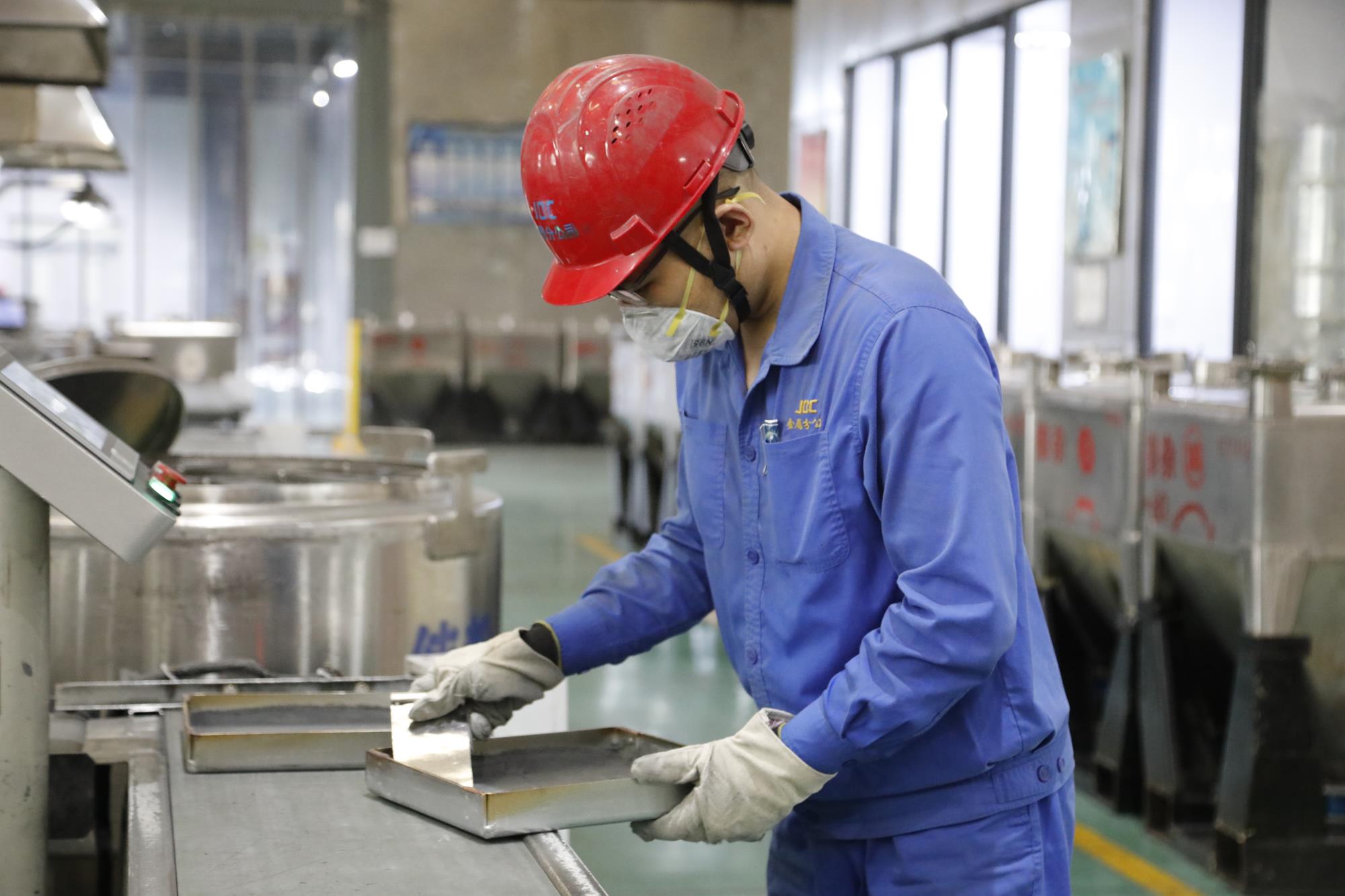 在生產(chǎn)現(xiàn)場,班組長與安全員們頭戴醒目的白色安全帽,佩戴安全袖標(biāo),時刻關(guān)注著生產(chǎn)過程中的每一個環(huán)節(jié)。其余人員則統(tǒng)一佩戴紅色的安全帽,他們或正在進(jìn)行篩分放料,或正在進(jìn)行驗料作業(yè)……這種“色彩+袖標(biāo)”的方式,讓班組人員的身份更明確,現(xiàn)場管理的警示作用也進(jìn)一步加強(qiáng),大家嚴(yán)格遵循標(biāo)準(zhǔn)操作流程,確保生產(chǎn)的安全、精度和效率。