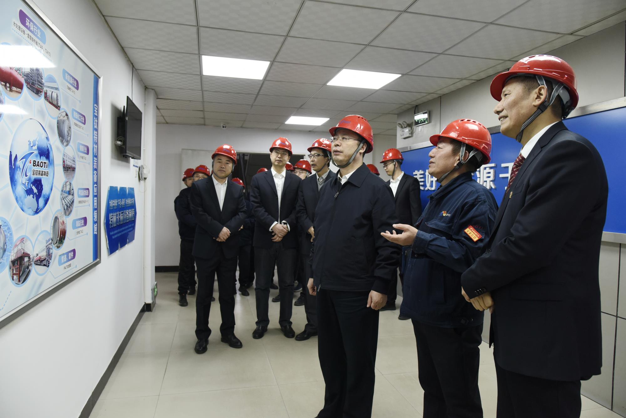 吳群英一行先后來到特種金屬公司管道生產(chǎn)線、裝備制造公司、1850寬幅熱軋產(chǎn)線智能控制中心,詳細了解相關(guān)產(chǎn)業(yè)發(fā)展、設(shè)備運行、技術(shù)工藝、應(yīng)用領(lǐng)域及市場開發(fā)等情況,并檢查安全生產(chǎn)工作,隨后召開座談會聽取寶鈦集團工作匯報。