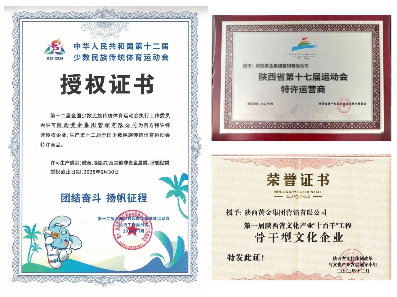 近年來,黃金集團充分發(fā)揮全產(chǎn)業(yè)鏈、全資質(zhì)等優(yōu)勢,精心培育打造了獨具特色的“秦金”品牌,并在全國貴金屬銷售領(lǐng)域贏得了較高知名度和影響力?!扒亟稹鄙虡吮辉u為“陜西省著名商標”,“秦金”品牌標準金被認定為“陜西工業(yè)精品”“陜西省知名品牌產(chǎn)品”,權(quán)屬營銷公司連續(xù)獲評第一屆、第二屆陜西省文化產(chǎn)業(yè)“十百千”工程骨干型文化企業(yè),“秦金”品牌貴金屬投資文創(chuàng)產(chǎn)品已在全國二十余家銀行的上萬個網(wǎng)點銷售。進軍貴金屬文體旅博產(chǎn)業(yè)是黃金集團延鏈、補鏈、強鏈的重要舉措,四年來連續(xù)助力國家及省上多個重要體育賽事,圓滿完成2021年十四運會全品類特許運營、2022年陜西省十七運會特許運營、2023年第一屆學(xué)青會特許運營、陜西省第十屆藝術(shù)節(jié)運營、2024年第十二屆全國少數(shù)民族運動會特許運營,榮獲“陜西省第十七屆運動會特別協(xié)作企業(yè)”稱號并獲頒“集體嘉獎”榮譽獎牌。一系列成績與突破,充分展現(xiàn)了黃金集團在服務(wù)國家級體育賽事方面的擔當與貢獻,彰顯了集團的核心競爭力與專業(yè)化能力。此次成功競獲十五運會貴金屬制品類特許生產(chǎn)商,對在大灣區(qū)乃至全國更大范圍內(nèi)拓展市場、建立合作伙伴關(guān)系等具有重要意義。