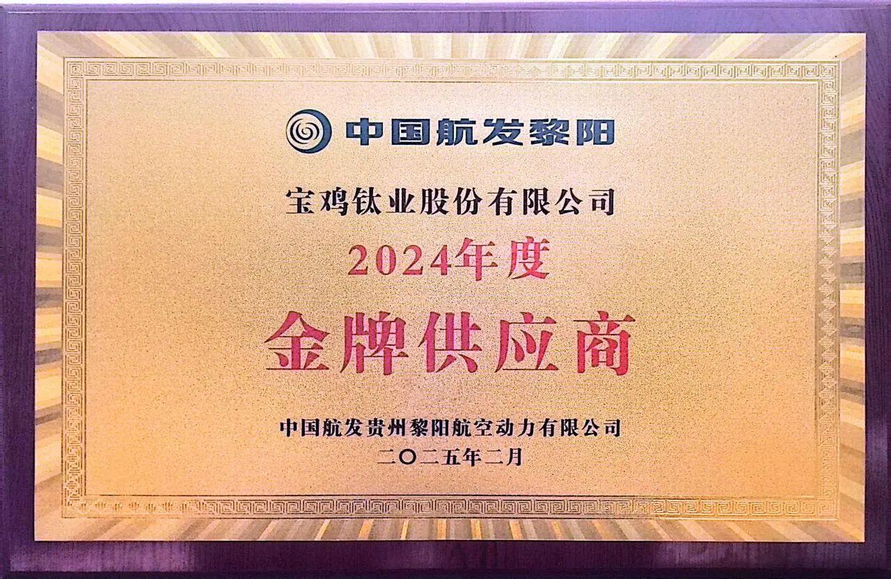近日,在中國(guó)航發(fā)貴州黎陽(yáng)航空動(dòng)力有限公司(以下簡(jiǎn)稱(chēng)中國(guó)航發(fā)黎陽(yáng))2024年度供應(yīng)商大會(huì)上,寶鈦股份憑借在鈦合金材料研發(fā)、生產(chǎn)交付及服務(wù)保障領(lǐng)域的卓越表現(xiàn),從數(shù)百家供應(yīng)商中脫穎而出,榮獲“2024年度金牌供應(yīng)商”稱(chēng)號(hào)。