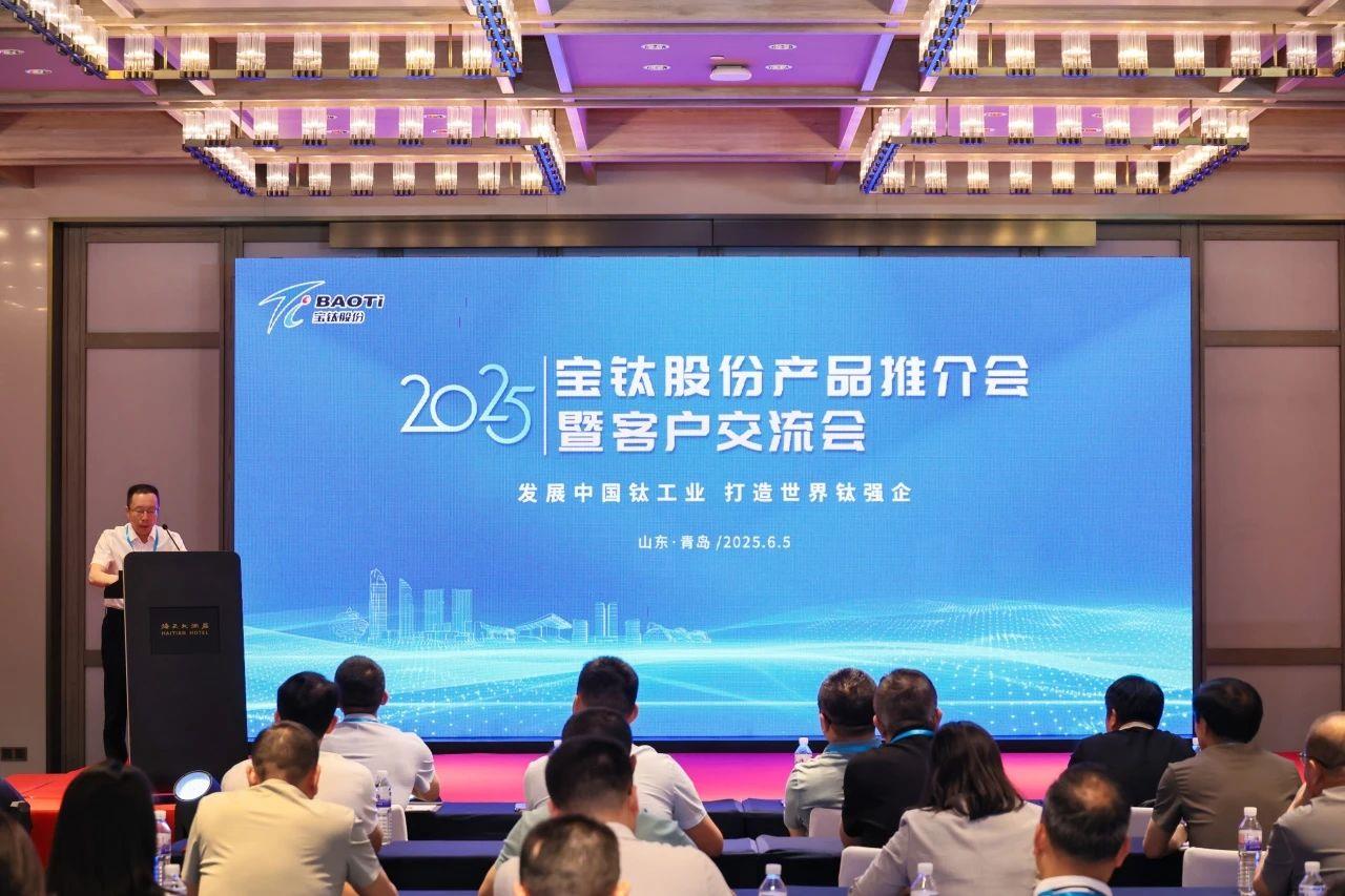 6月5日,寶鈦股份2025年產(chǎn)品推介會(huì)暨客戶(hù)交流會(huì)在青島舉行。45家合作單位、77位行業(yè)伙伴齊聚一堂,共話鈦業(yè)發(fā)展新機(jī)遇,共繪合作新藍(lán)圖。寶鈦集團(tuán)副總經(jīng)理、總工程師,寶鈦股份董事何書(shū)林致歡迎辭。寶鈦股份副總經(jīng)理容耀主持會(huì)議。