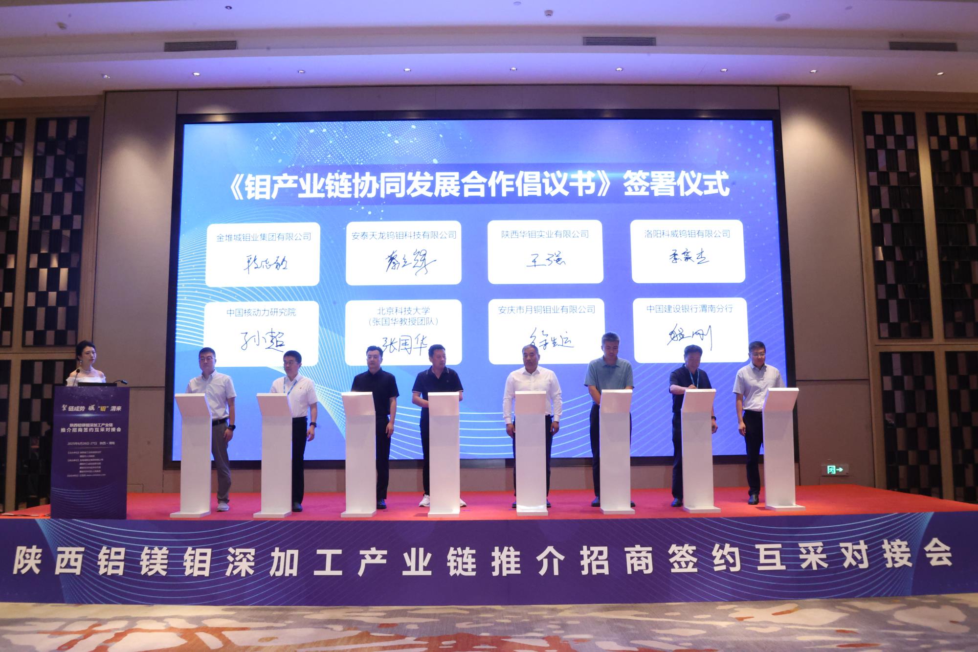 會上,渭南市華州區(qū)發(fā)布了鉬產業(yè)發(fā)展布局規(guī)劃,產業(yè)鏈相關合作銀行中國建設銀行陜西分行發(fā)布金融政策。由省鋁鎂鉬深加工產業(yè)鏈鏈主企業(yè)金鉬集團牽頭、聯(lián)合產業(yè)鏈上下游企業(yè)、科研院所、高校及金融機構共同發(fā)起簽署了《鉬產業(yè)鏈協(xié)同發(fā)展合作倡議書》。