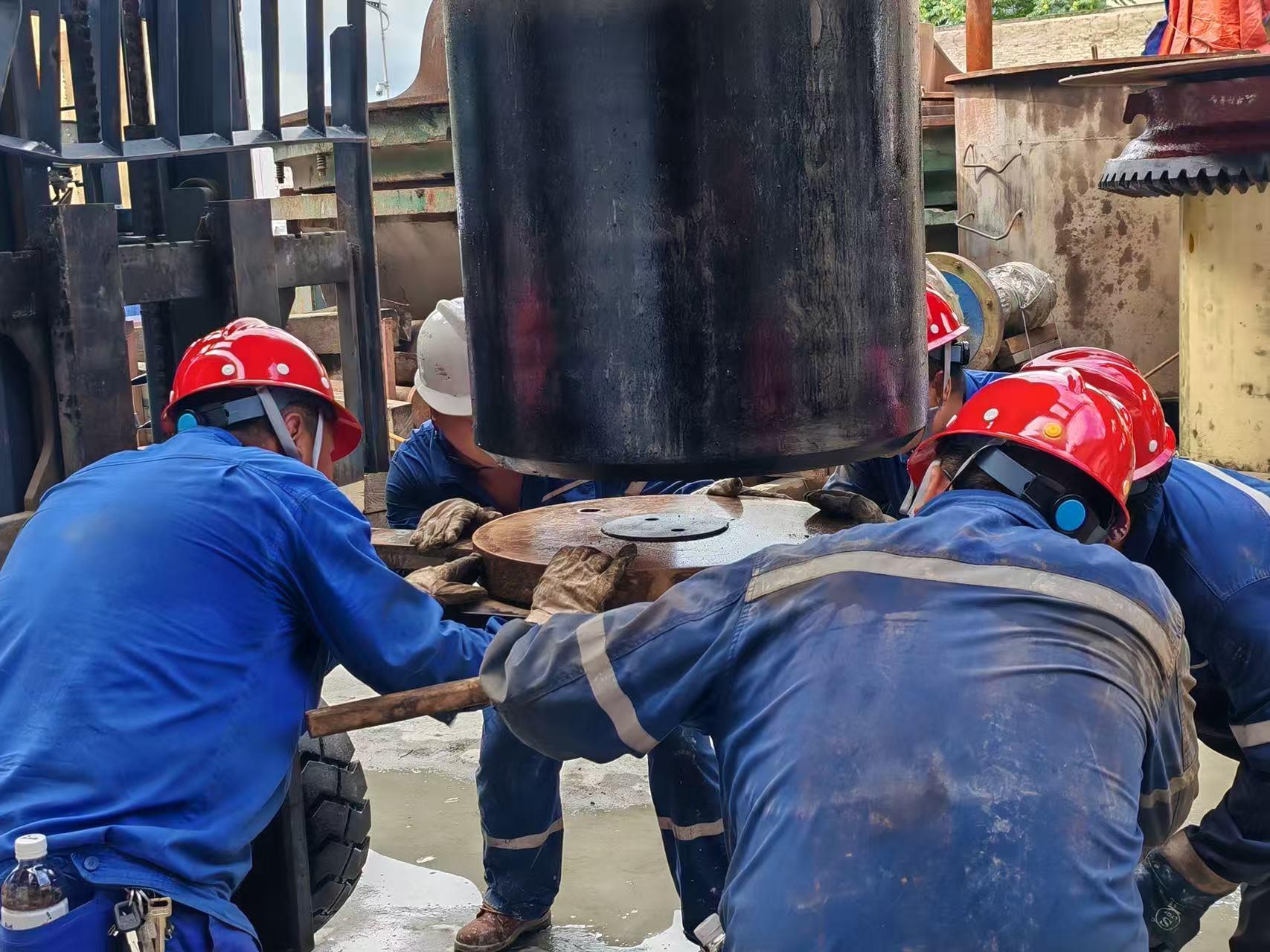 機械設(shè)備檢修忙。在碎礦車間新線中碎中修現(xiàn)場,檢查臂架襯套的磨損情況,打磨偏心套,連接冷卻器,更換定錐襯板等檢修任務逐一完成,各工種密切配合,在高溫的“烤”驗下高效協(xié)作。檢修現(xiàn)場熱火朝天,檢修人員齊整的工服、安全帽、防護眼鏡,汗珠滾落到設(shè)備上,滴落在工具上,浸透了工服,但檢修人員手中的扳手、萬用表、焊槍依然穩(wěn)、準、快,成為了設(shè)備可靠運轉(zhuǎn)的守護神,為安全生產(chǎn)平穩(wěn)高質(zhì)量保駕護航。