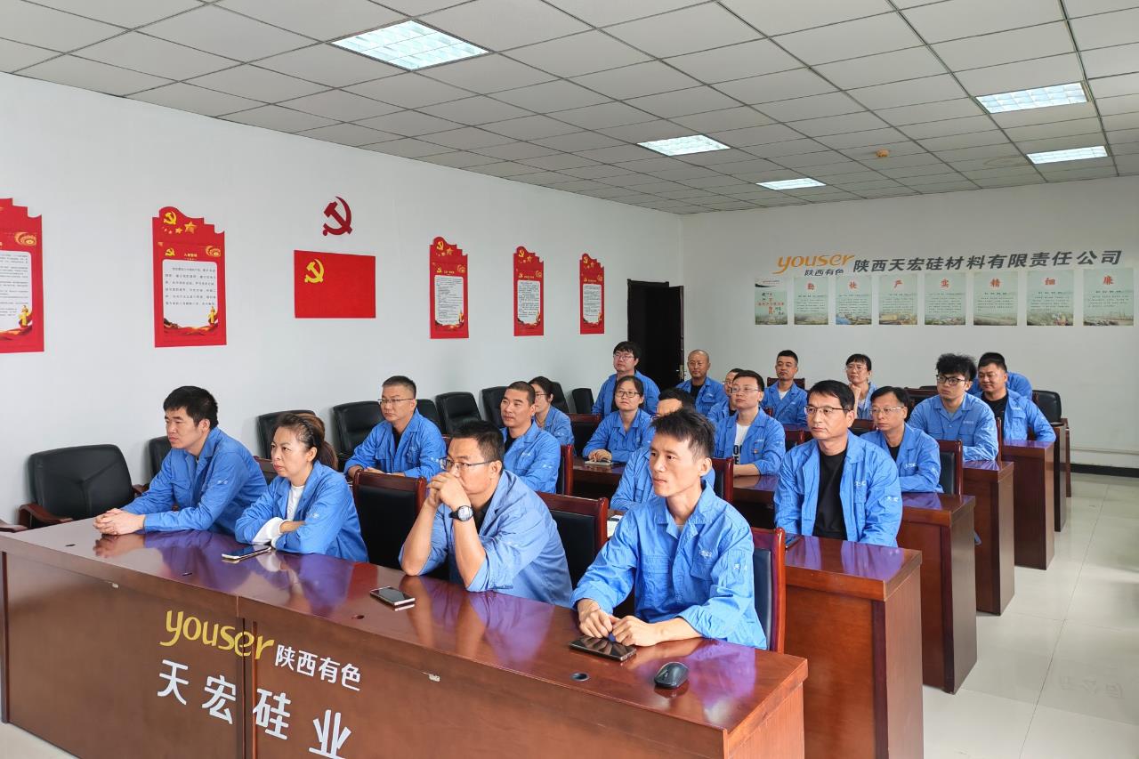 2025年9月3日上午,天宏硅業(yè)組織在崗人員集中收看紀(jì)念大會(huì)實(shí)況直播第二會(huì)場