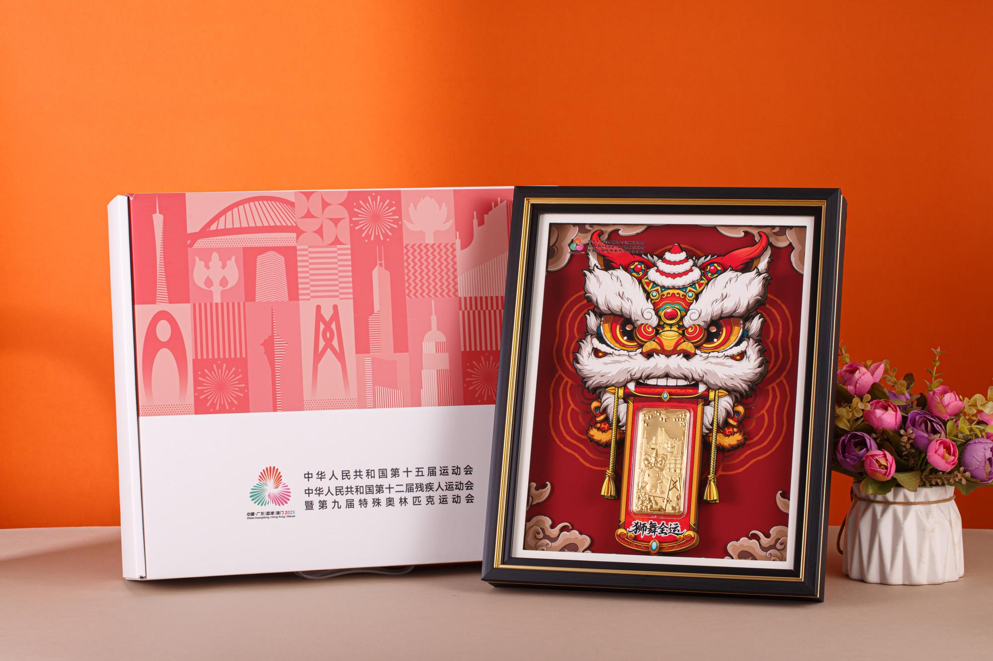 近日,由陜西黃金集團(tuán)特許生產(chǎn)的第十五屆全國運(yùn)動(dòng)會紀(jì)念版畫——《獅舞全運(yùn)》正式面市?!丢{舞全運(yùn)》紀(jì)念版畫以嶺南醒獅為靈感,融合粵港澳三地文化符號,打造出集藝術(shù)、收藏、紀(jì)念于一體的高端文創(chuàng)禮品,成為本屆全運(yùn)會特許商品中的一大亮點(diǎn)。