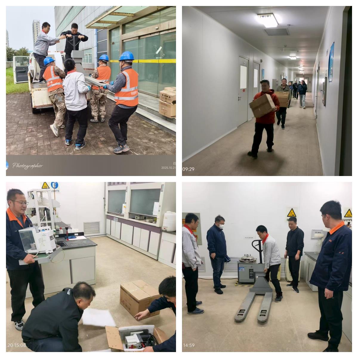 期間,天宏硅業(yè)提前完成設(shè)備清點(diǎn)、打包及手續(xù)辦理,為搬遷提供前置保障并參與設(shè)備搬遷全過程;光電科技多部門聯(lián)動—— 動能中心黨支部組織黨員投身儀器搬運(yùn)、布線擺放工作;科創(chuàng)區(qū)工程建設(shè)管理組專項解決大件搬運(yùn)難題;后勤中心主動承接設(shè)備運(yùn)輸與家具拆裝;電池事業(yè)部提供辦公桌椅支持;科技規(guī)劃部及項目組全程參與協(xié)調(diào)各方,確保搬運(yùn)安全、布置合理。各參與方克服時間緊、任務(wù)重的挑戰(zhàn),以實干作風(fēng),保障行動高效落地。
