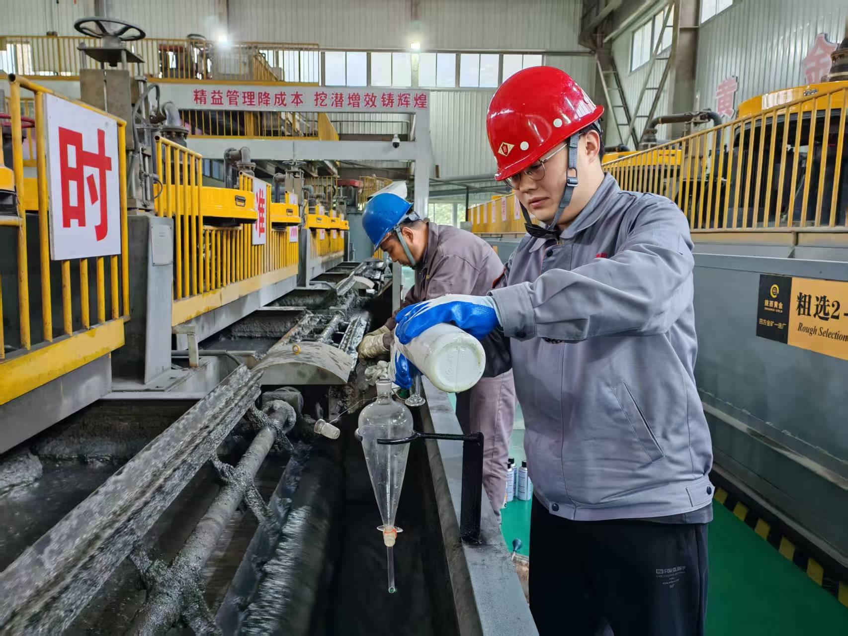 2025年9月,新型環(huán)保捕收劑工業(yè)試驗正式啟動。來自西安西北有色地質研究院與廣西大學的8名技術人員駐廠指導,與選廠工藝員、操作工密切協(xié)作,在保障主流程連續(xù)穩(wěn)定運行的前提下,精準完成新型捕收劑的替換與參數(shù)優(yōu)化。