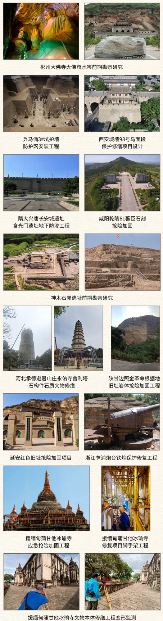 當(dāng)歷史的塵埃落定,文物成為文明傳承的鮮活載體。工程公司深耕文物保護領(lǐng)域近30載,用專業(yè)與創(chuàng)新鑄就品牌力量,是文物保護領(lǐng)域的“生力軍”。如今,工程公司已構(gòu)建起覆蓋文物勘查、評估、勘察設(shè)計、施工、預(yù)防性保護,文物遷移以及數(shù)字化應(yīng)用的全鏈條服務(wù)體系,業(yè)務(wù)范圍涵蓋古遺址、古墓葬、古建筑、石窟寺、石刻及近現(xiàn)代重要史跡等各類文物保護。公司立足陜西,輻射全國十余省市,更成功拓展至緬甸等共建“一帶一路”國家,跨區(qū)域、跨文化服務(wù)綜合實力尤為突出。