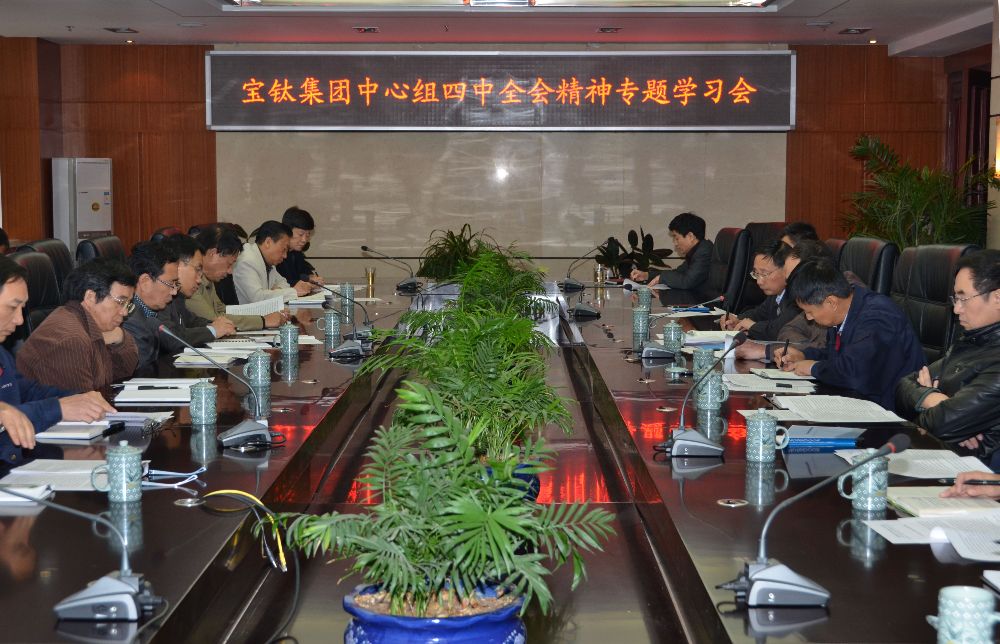 10月28日上午,寶鈦集團(tuán)黨委中心學(xué)習(xí)組成員在公司九樓會(huì)議室,集中學(xué)習(xí)了《中國共產(chǎn)黨第十八屆中央委員會(huì)第四次全體會(huì)議公報(bào)》、《人民日?qǐng)?bào)》社論《實(shí)現(xiàn)依法治國的歷史跨越》、中央紀(jì)委書記王岐山在中紀(jì)委第十八屆四次全會(huì)上的講話《治國必先治黨,治黨務(wù)必從嚴(yán)》等五篇專題文章,深刻領(lǐng)會(huì)了中共中央關(guān)于全面推進(jìn)依法治國,建設(shè)中國特色社會(huì)主義法治體系,建設(shè)社會(huì)主義法治國家的精神。學(xué)習(xí)會(huì)由寶鈦集團(tuán)黨委書記王文生主持,寶鈦集團(tuán)領(lǐng)導(dǎo)班子成員及部分副總工程師、黨委部門負(fù)責(zé)人參加了學(xué)習(xí)會(huì)。