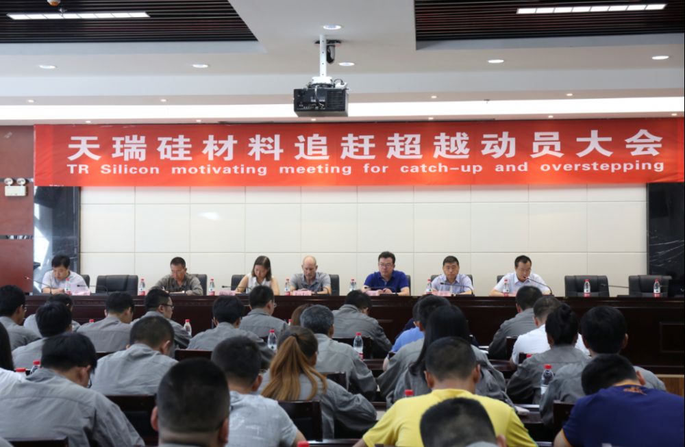 為全面落實習(xí)近平總書記來陜講話精神以及陜西省第十三次黨代會精神,動員廣大職工凝心聚力,追趕超越,為項目建設(shè)貢獻(xiàn)全部力量,7月10日,天瑞硅材料召開了以“凝心聚力抓建設(shè)、追趕超越促發(fā)展”為主題的追趕超越動員大會,公司領(lǐng)導(dǎo)、各部室負(fù)責(zé)人及職工代表110余人參加了會議。會議由天瑞硅材料黨委副書記、紀(jì)委書記韓秋同志主持。